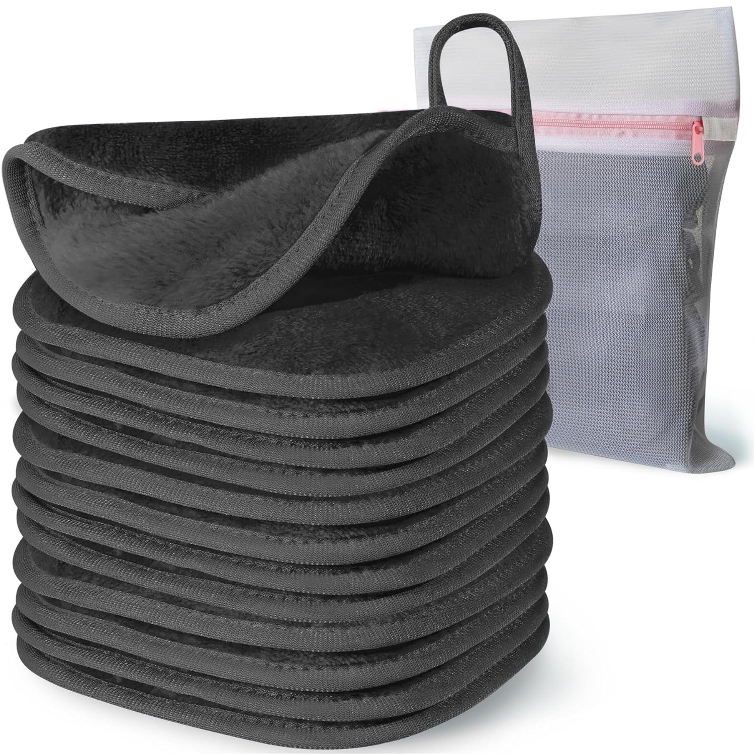 Makeup Remover Cloth, 6" x 6" Makeup Remover Towels Reusable Face Cloth for Washing Face, Makeup Remover Pads Microfiber Face Washcloth with Mesh Bag, 12 Pack, Grey