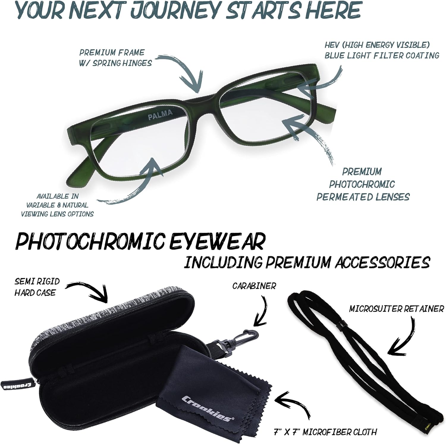 Croakies Palma Photochromic Progressive Eyewear | UV400 Sunglass for Outdoor | Bluelight Eyeglass for HEV Devices | Bundle