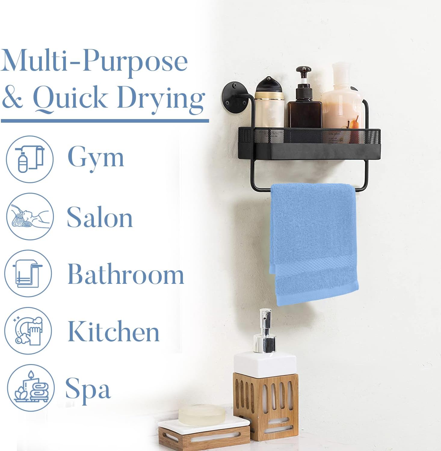 DAN RIVER 12-Pack Premium 100% Cotton Medium Blue Face Towels – Reusable Face Towel Set, Soft & Absorbent washcloths for Showering – Hand and Face Towels, 550 GSM (12x12 in)