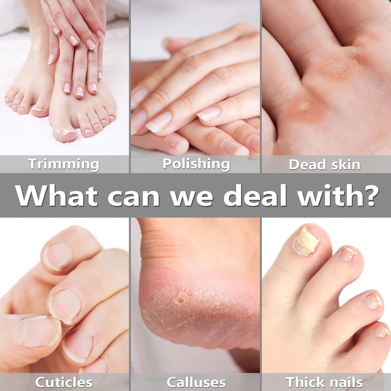 - 【Nail Grinder for Seniors】 This nail grinder is a must have for men, women and especially seniors who have thick fingernails and toenails. It can thin, trim and shape thick nails with its upgraded powerful motor and quality nail drill bits.