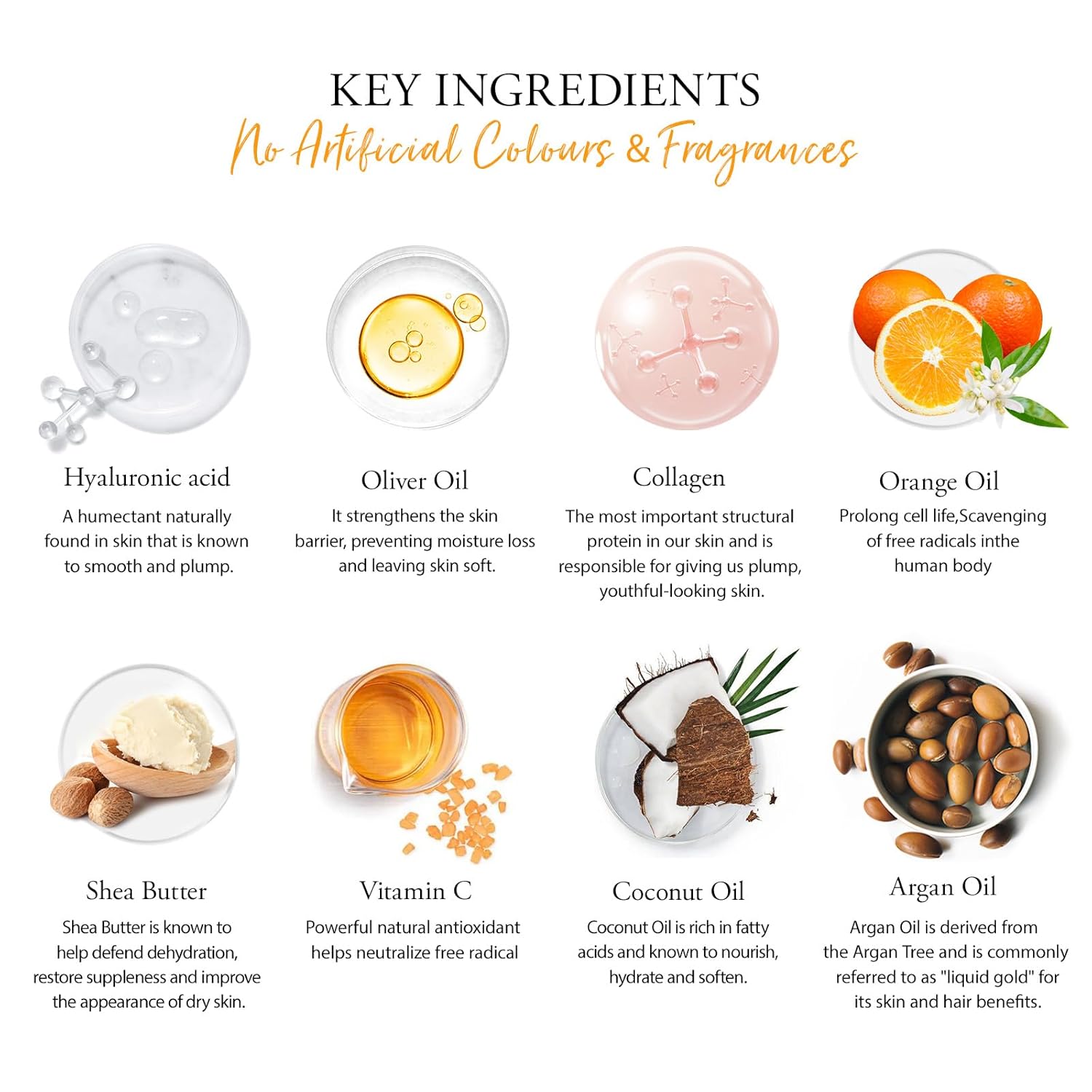 - 【Moisturizing Ingredients】Made only with high-quality gentle ingredients and riched in Orange essential oils, shea butter, argan oil, coconut oil and hyaluronic acid, it can effectively cleanse and moisturize your skin