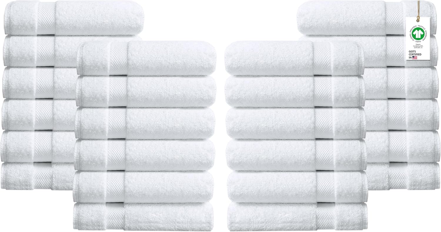 Delara 100% Organic Cotton Towels 650 GSM Plush Feather Touch Quick Dry Hand Towel, Pack of 24 GOTS Certified, Oeko-Tex Green Certified, Organic Cotton Hand Towel, 20"X30"