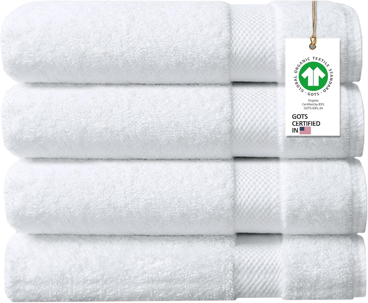 Delara 100% Organic Cotton Towels 650 GSM Plush Feather Touch Quick Dry Bath Sheet, Pack of 4 GOTS Certified, Oeko-Tex Green Certified, Organic Cotton Bath Sheet, 36"X70"
