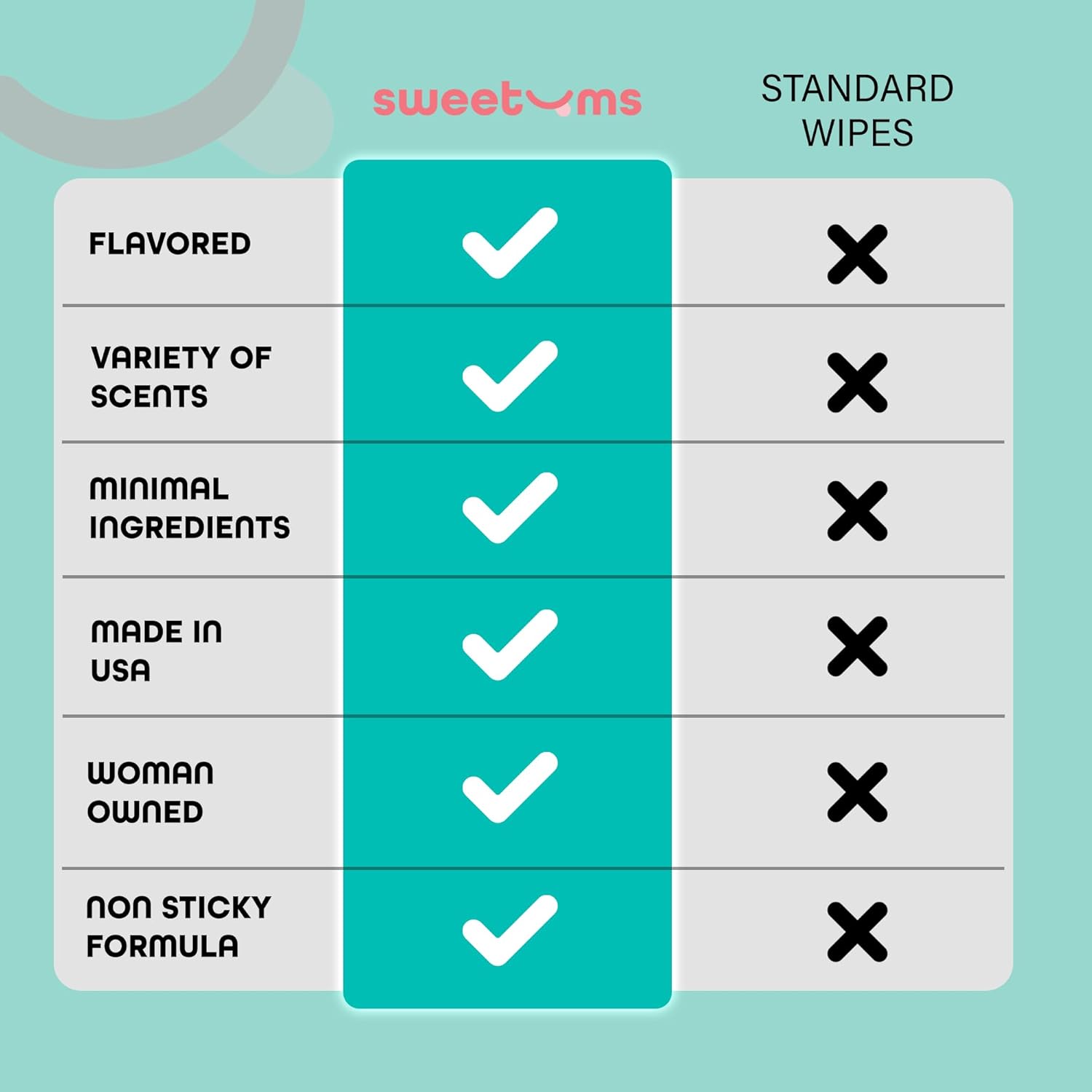 - 🌈 DELICIOUS & REFRESHING: Sweetums flavored wipes are the only female wipes that help with both personal hygiene and have a natural flavor that your partner will love!