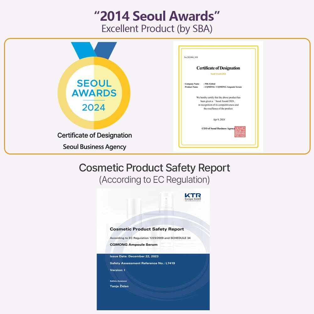 - [Safety] Safe to use on sensitive skin. Not including animal, harmful ingredients (Paraben, Formaldehyde, Sulfate, Oil, Surfactants, Artifical Fragrance & Color, Cruelty Free). * Produced by the largest cosmetics manufacturer(With ISO & CGMP Certification) in Korea. * Completed MoCRA Registration. * Cosmetic Product Safety Report according to EC Regulation (Safety Assessment Reference No. : L7419) * â2024 Seoul Awardsâ : Excellent Product (by SBA in Korea)