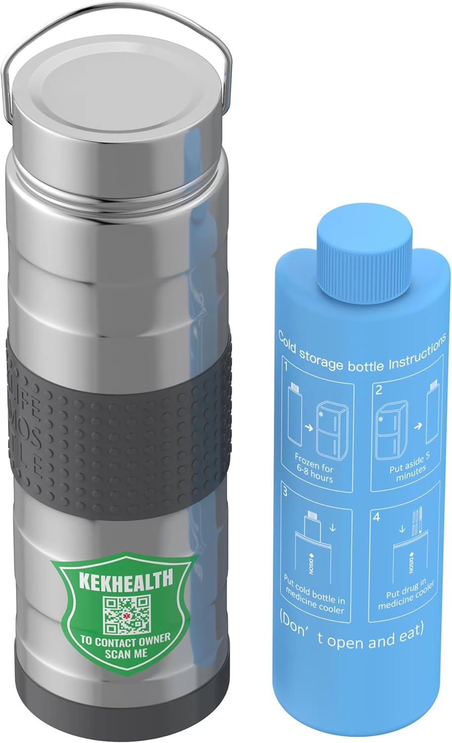 - ENHANCED COOLING PERFORMANCE:1) Durable Construction: Made from robust 18/8 (304) stainless steel with double-layer vacuum insulation, which enhances the convenience and safety of use; 2)Advanced Cooling Technology: SIMON@ Includes efficient blue gel bottle that maintain insulin at refrigerator temperatures (36-46°F / 2-8°C) for about 35 hours (36-79F for 60H); 3) Extra White Emergency Bottle of ice water can extend the storage time by 12 hours, total keep cold for 36-79F up to 74H