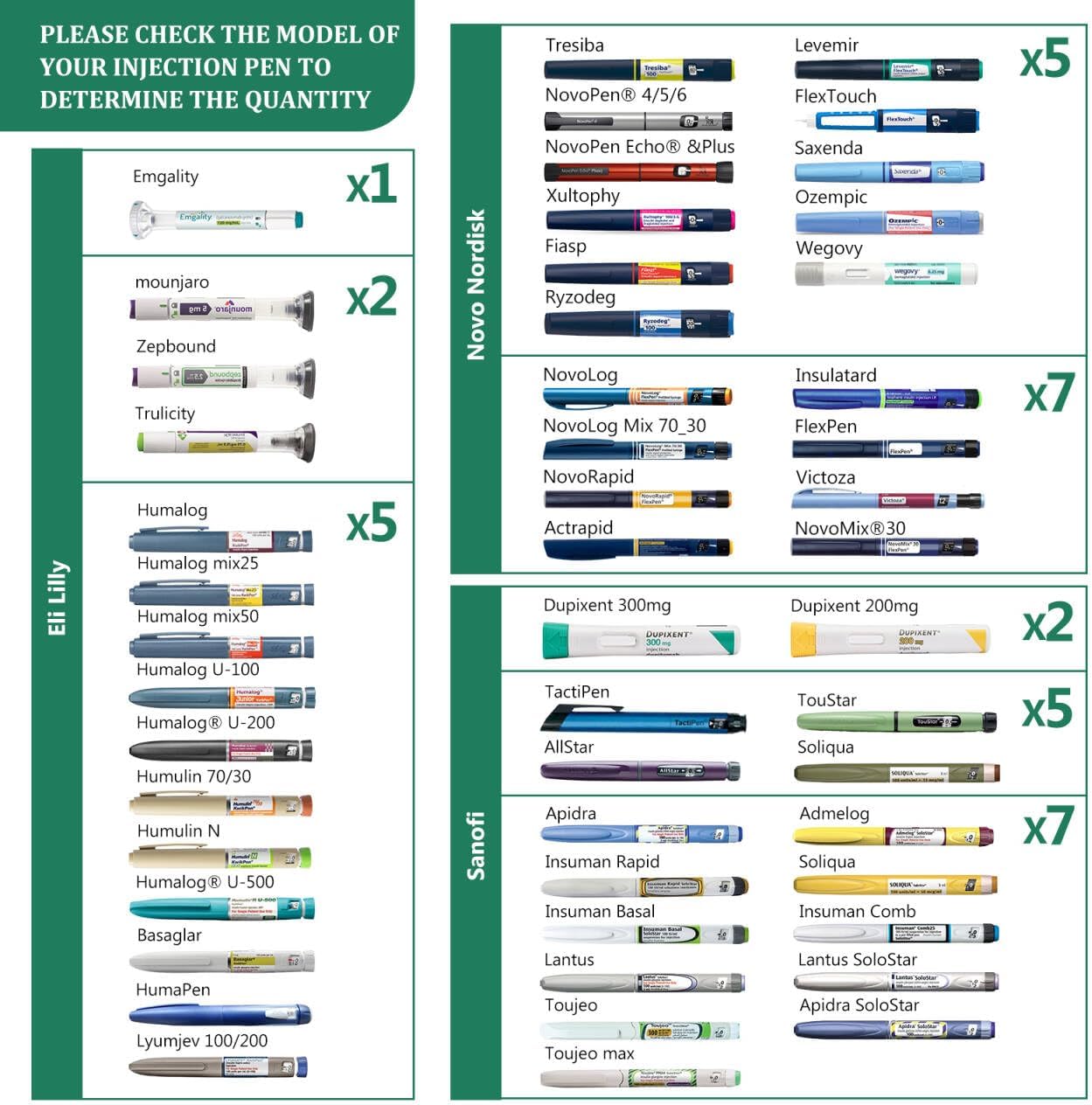 - UNIVERSAL COMPATIBILITY FOR MOST PENS:Drawing from extensive market experience, our company offers models that fit up to 95% of popular brands and sizes of injection pens. You're guaranteed to find the perfect match for your lifestyle! For detailed compatibility, please refer to the table in the product images. If your pen model isn't listed, contact our 24-hour customer service for personalized assistance