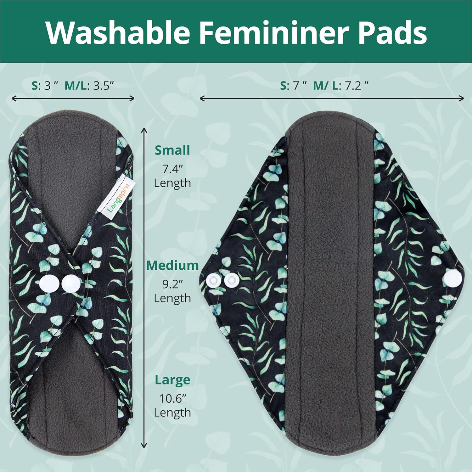 Langsprit Absorbent Reusable Menstrual Sanitary Pads/Washable Cloth Menstrual Period Pads,Reusable Panty Liners(Winter,M)