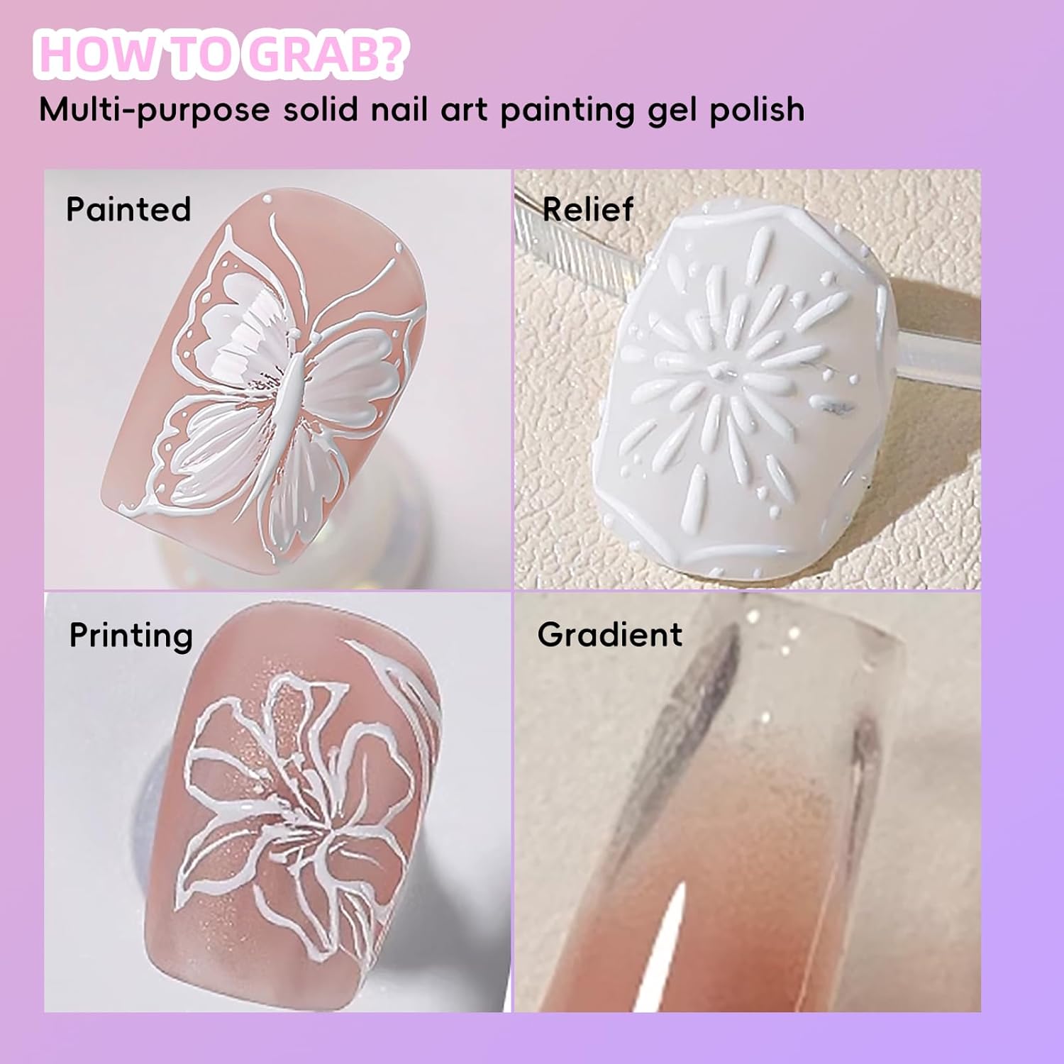- MULTIFUNCTIONAL SOLID GEL NAIL POLISH: Clara Colors painting gel nail polish can be used in different ways, such as nail art painting, applying chrome nail powder, ombre nail art design, relief, printing and apply as normal gel nail polish. Come try and find your own fun with our paint gel.