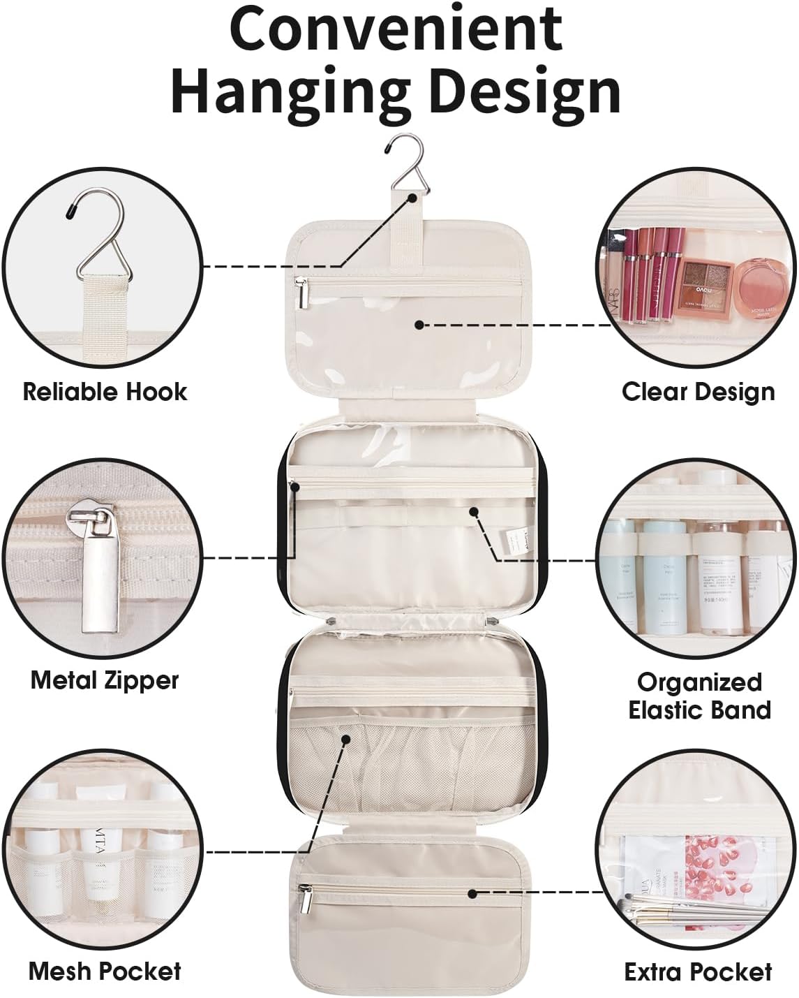 Narwey Hanging Toiletry Bag for Women Travel Makeup Bag Organizer Toiletries Bag for Travel Size Essentials Accessories Cosmetics (Black (Medium))