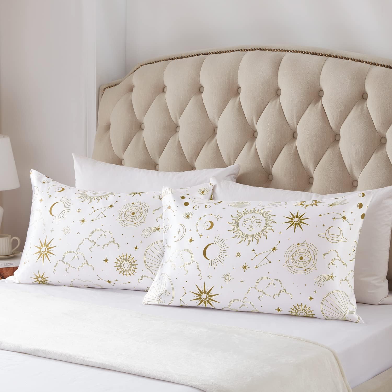 EXQ Home Satin Pillowcase Silky Satin Pillowcase for Hair and Skin,Soft Cooling Printed Pillow Cases Queen Size Set of 2 Satin Pillow Case for Women with Envelope Closure (White Moon,20X30inch)