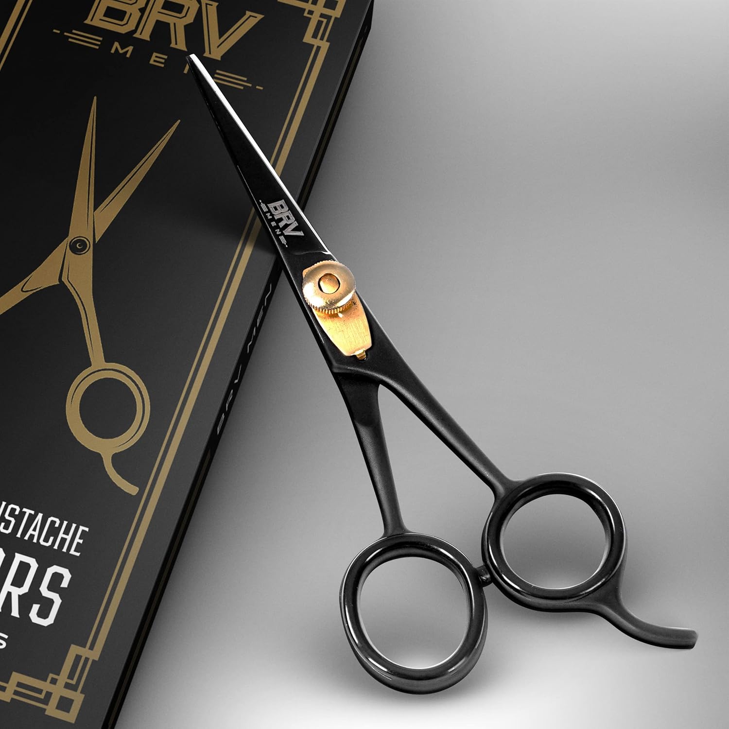 - THE CLASSY LOOK OF A TIMELESS DESIGN With our mustache and beard scissors style begins with the box itself. Simple lines and elegant simplicity announces the classy tool within. Shears that will immediately become a favorite addition to your grooming shelf. Choose between black or silver finish stainless steel, while gold colored brass adjustment pins finish off the effect in absolute style. Best Beard Trimmer Scissors For Men.