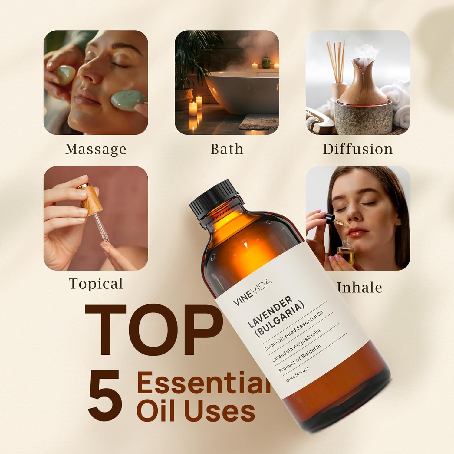 VINEVIDA Lavender Essential Oil 4 oz - Undiluted Lavender Oil - DIY Candle Scents for Candlemaking - Bulk Essential Oil for Soap Making Safe for Skin