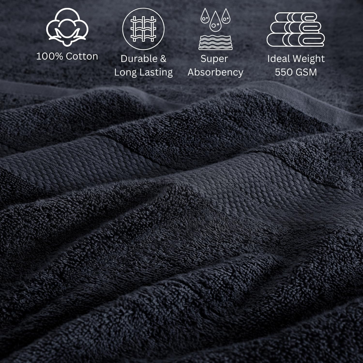 LANE LINEN 100% Cotton Bathroom Towel Set - 24 Pcs, Hotel Quality - Super Soft & Highly Absorbent - Ring Spun - 2 Bath Sheets, 4 Fingertip, 4 Bath, 6 Hand Towels, 8 Washcloths - Family Pack - Black