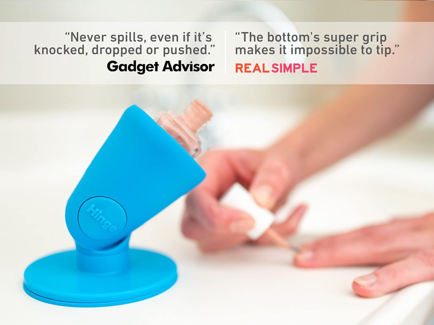 - THE STURDIEST NAIL TOOLS. Using the Hinge nail polish holder is like having your own personal assistant. Gripping any smooth surface like it’s a golden ticket, Smartgrip Technology keeps your Hinge in one place. Holding your nail polish bottle still at any comfortable angle will make sure you’re never inconvenienced.