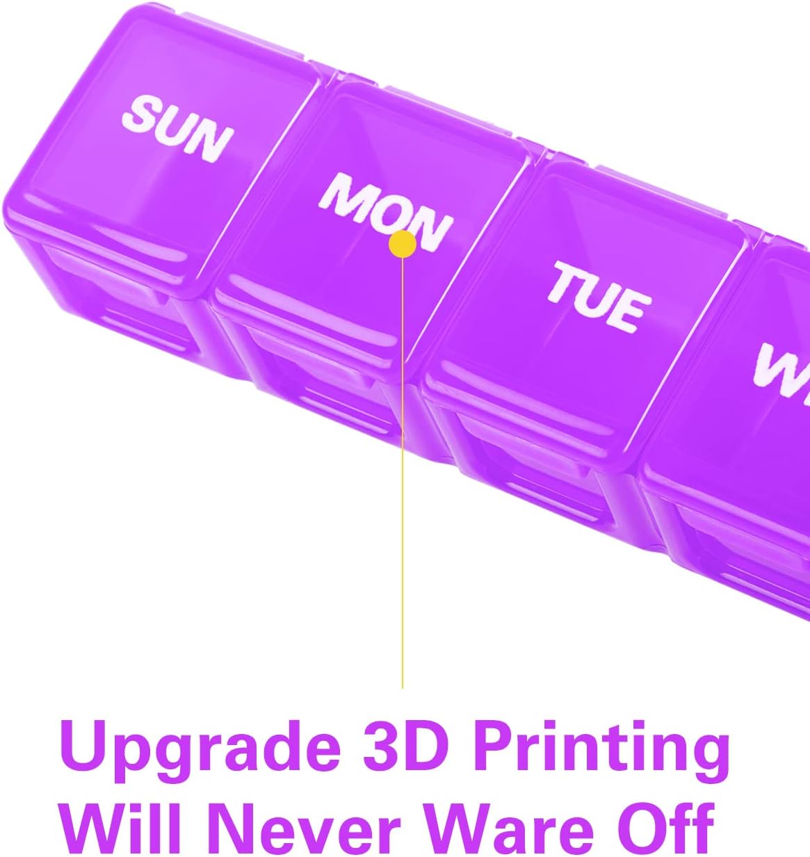 - Easy-to-Read Pill Case - The uppercase bold and wear-resistant day labels on the pill cases organizers 7 day make distinguishing the days of the week effortless. BUG HULL pills organizer is made of food grade BPA-Free material, safe for medical use.
