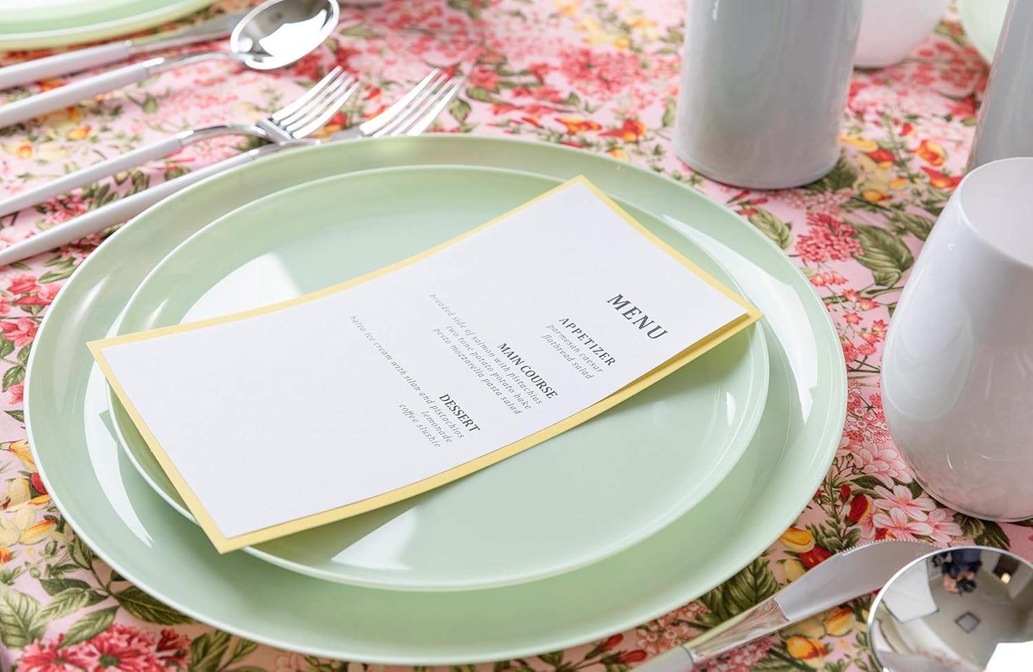 - ELEGANT DESIGN: Mint green plates With A Classy Edge / Border / Rim Edge Collection China like Plate, Will have elegant and exquisite appearance, ST Patricks Party Dishes