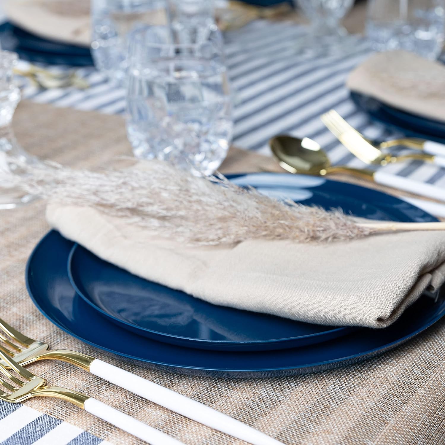 - [30 Pack 8.6''] Dark Blue Plastic Party Plates Edge Collection Premium heavyweight Elegant Disposable Tableware Dishes