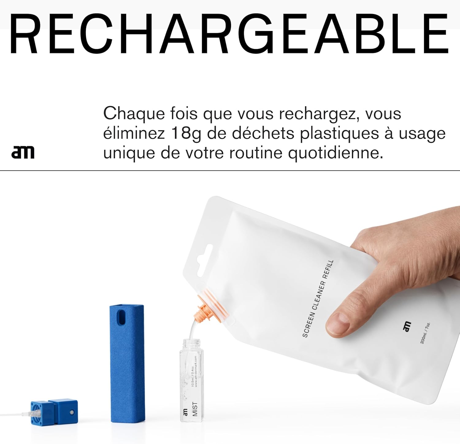 am Screen Cleaner with 7 oz Refill – Alcohol-Free Spray & Microfiber Cloth for iPhone 15 & 14, iPads, Tablets, Laptops, Phones, Smart TVs, Car Displays – Streak-Free, Non-Toxic, Eco-Friendly, Blue