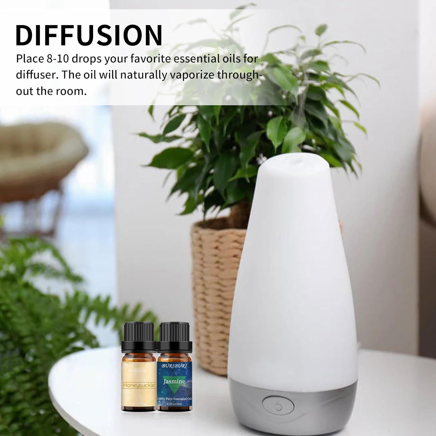 - Packing Includes: 10ml Honeysuckle Essential Oil x1, 10ml Jasmine Essential Oil x1. With no adulterants or dilution, 100% pure quality. BURIBURI scented oil is bottled in a durable amber glass bottle.