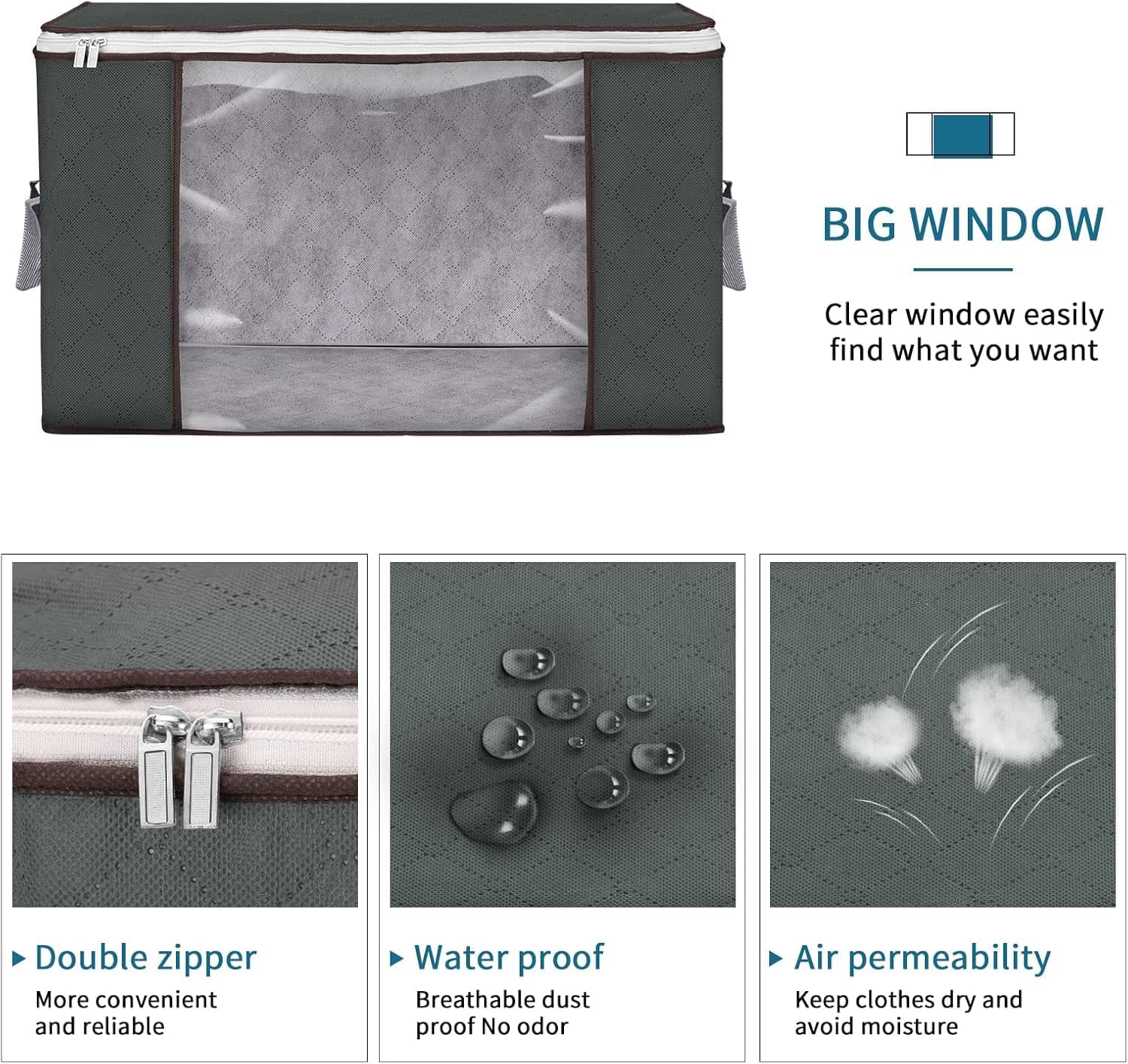 Large Storage Bags, 3 Pack Clothes Storage Bins Foldable Closet Organizers Storage Containers with Durable Handles Thick Fabric for Blanket Comforter Clothing Bedding 90 L (Gray)