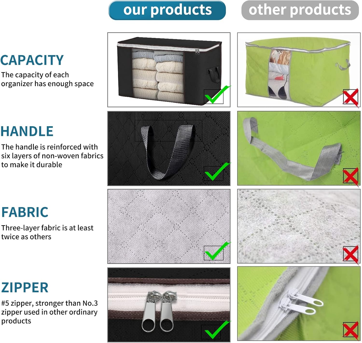 Large Storage Bags, 8 Pack Clothes Storage Bins Foldable Closet Organizers Storage Containers with Durable Handles Thick Fabric for Blanket Comforter Clothing Bedding 90 L (Black)