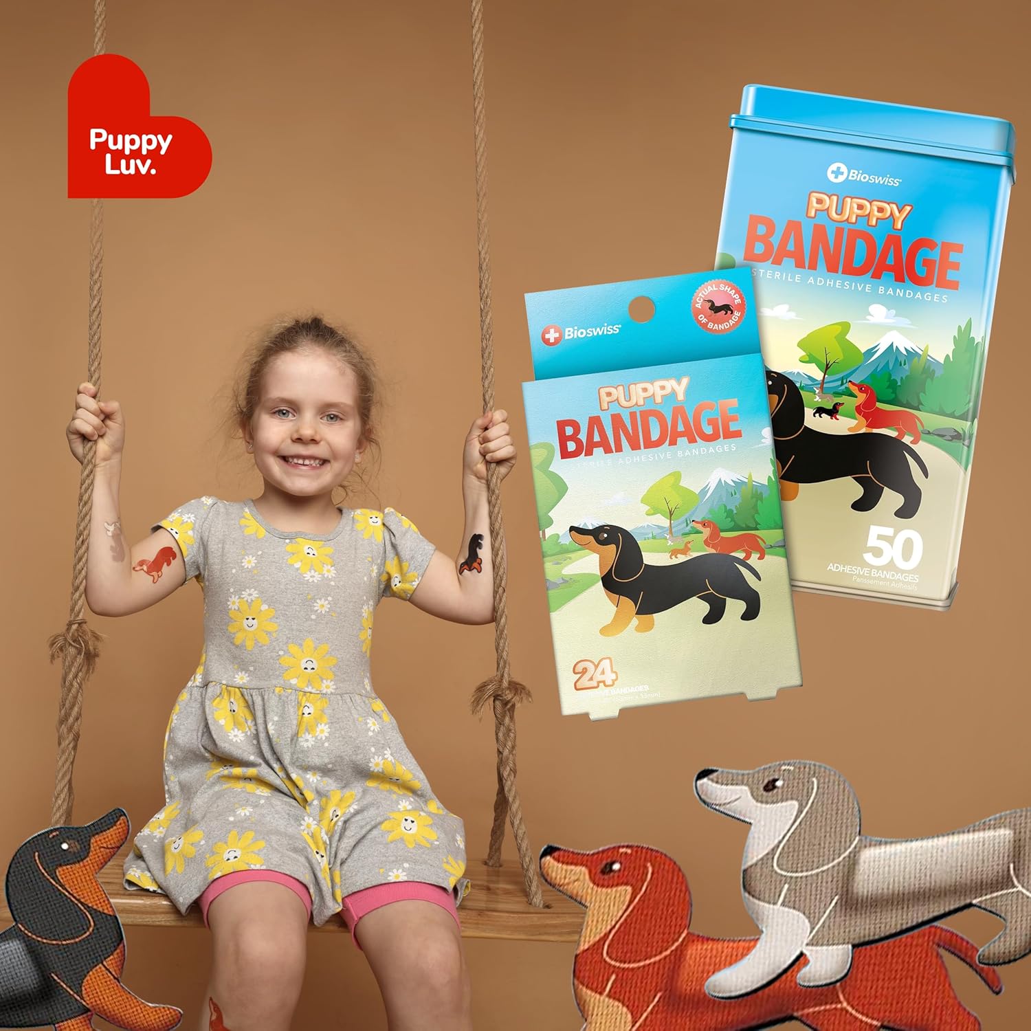 BioSwiss Kids Bandages, Puppy Shaped Self Adhesive Bandage Set, Latex Free, Sterile Wound Care, 50 Count