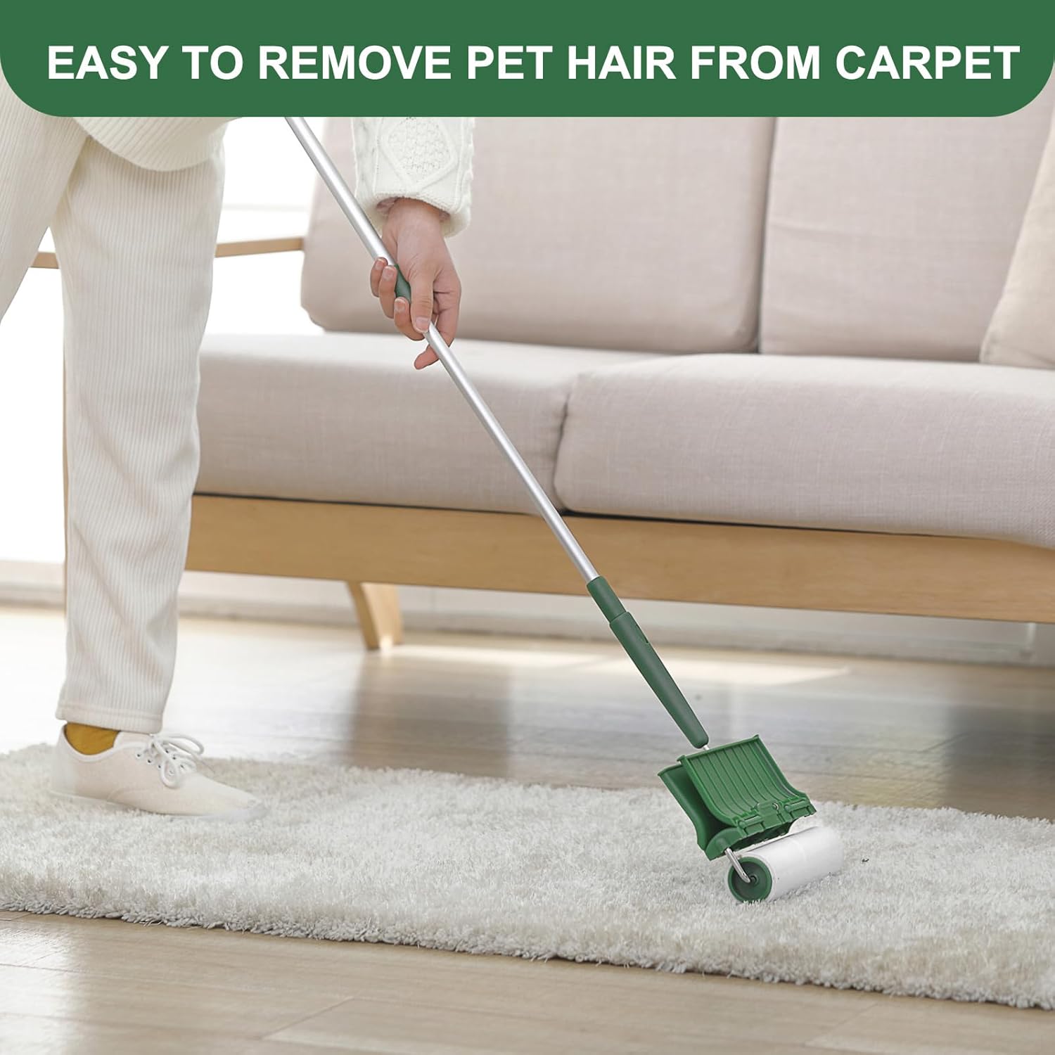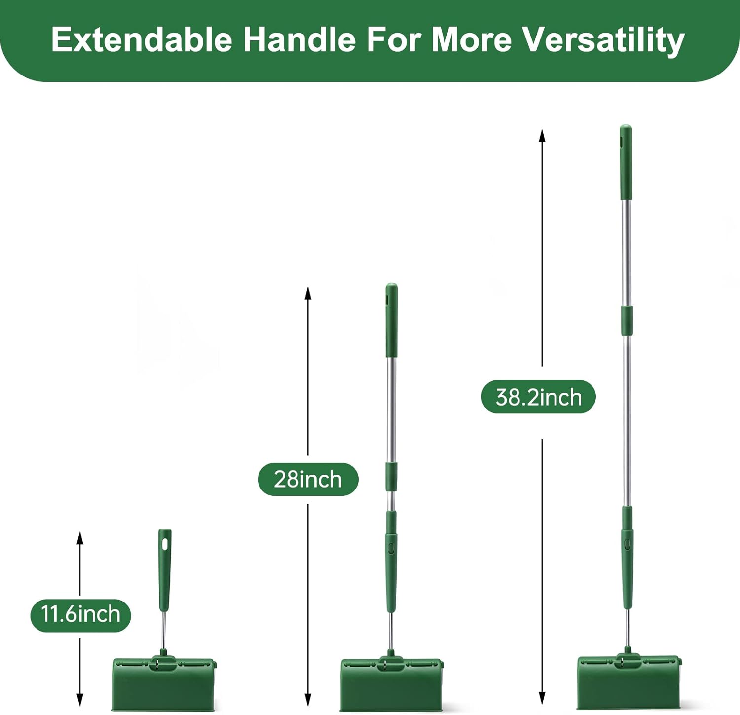 - FEDICELLY FLOOR LINT ROLLER WITH EXTENDABLE HANDLE: Giant lint roller comes with extendable handle from 18.3-28.7 inch long for far reachďźSeparate handle, rollers not includedďź. This retractable long handle can be adjusted to any suitable sizes as you need. You can use sticky floor roller standing up to clean hair from floor carpets, or you can easily reach under the sofa or bed to clean any dog & cat hair, dust, dirt.