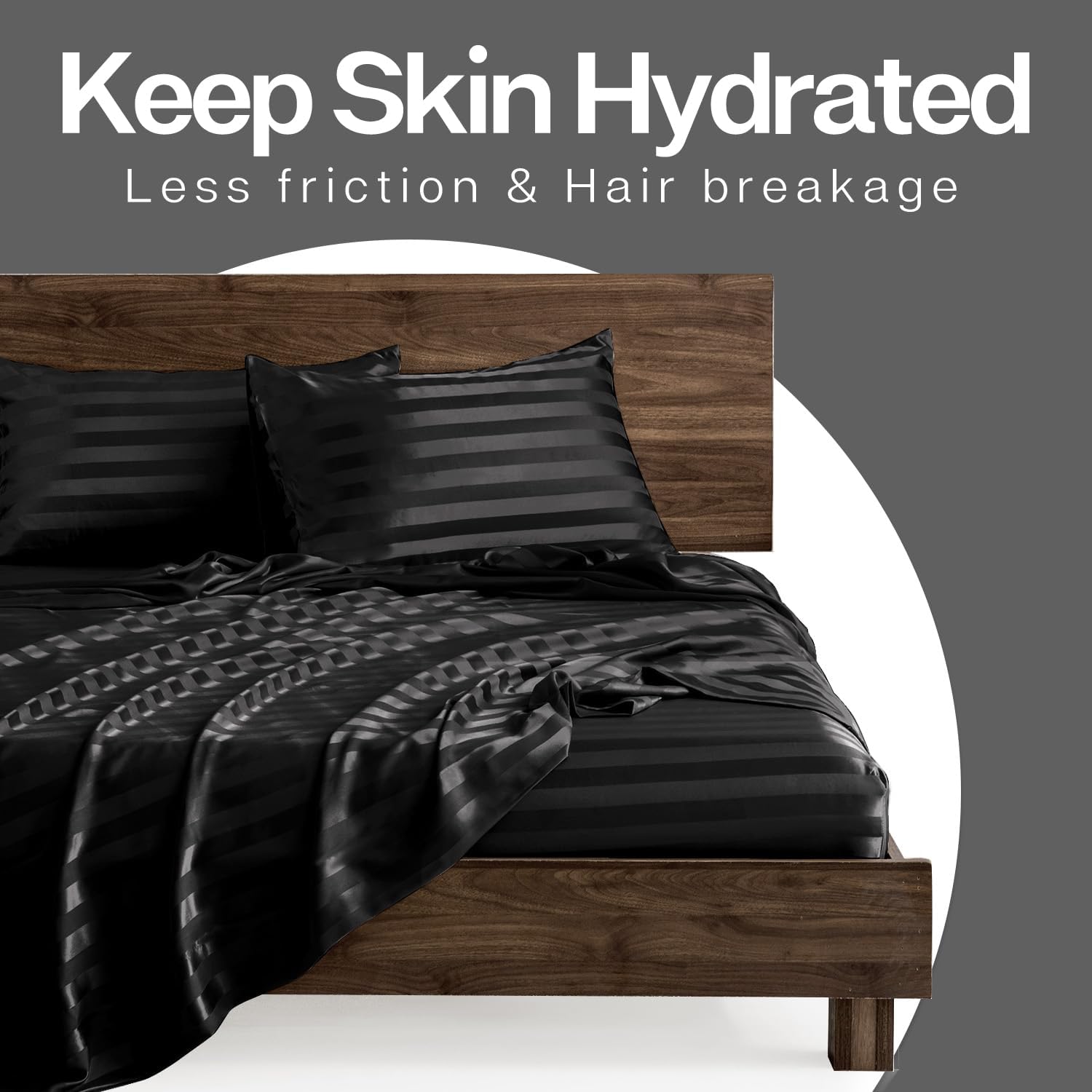 MR&HM Satin Pillowcase for Hair and Skin, Silk Satin Pillowcase 2 Pack, King Size Pillow Cases Set of 2, Silky Pillow Cover with Envelope Closure (20x36, Black Striped)