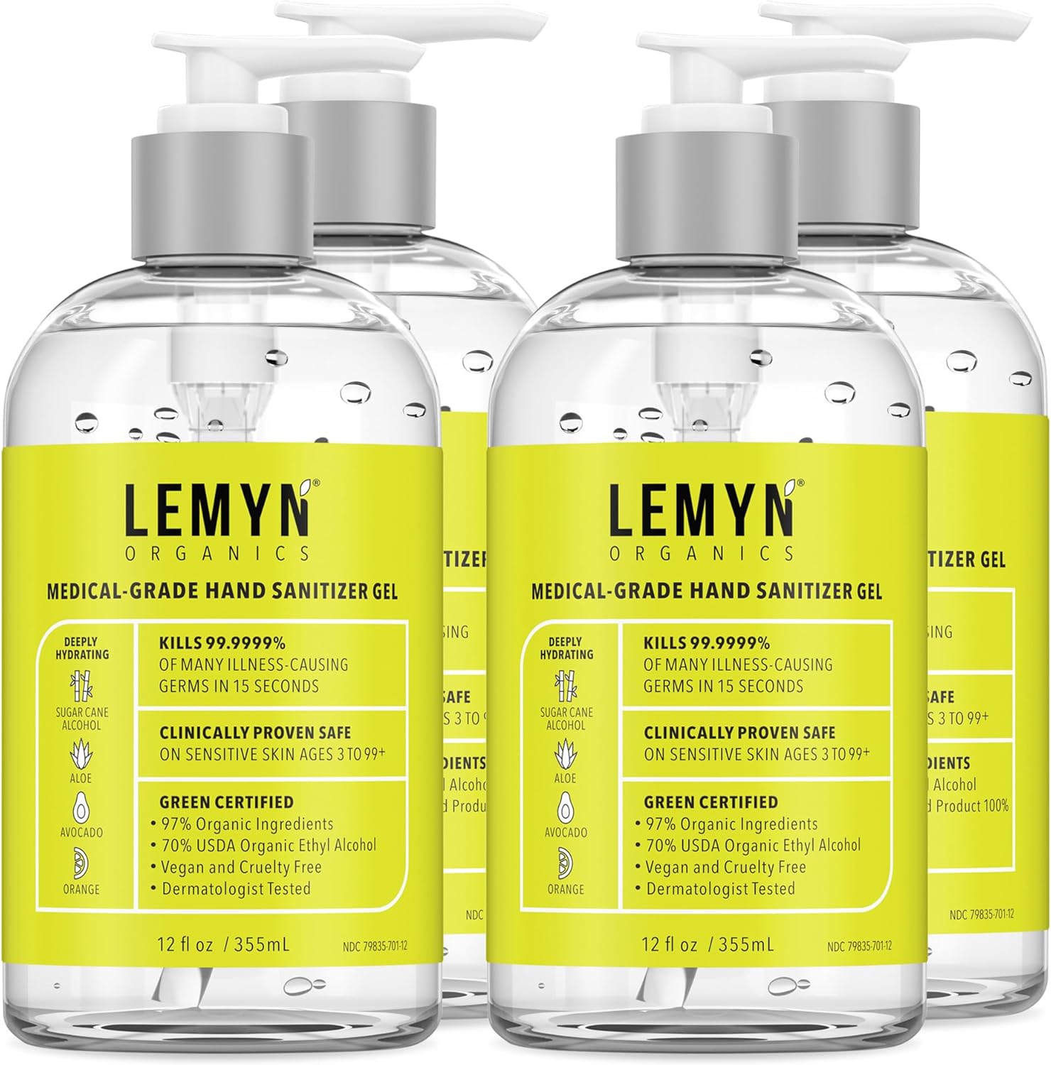 Medical Grade Hand Sanitizer Gel - 97% ORGANIC - 12 FL.OZ. (PACK OF 4)