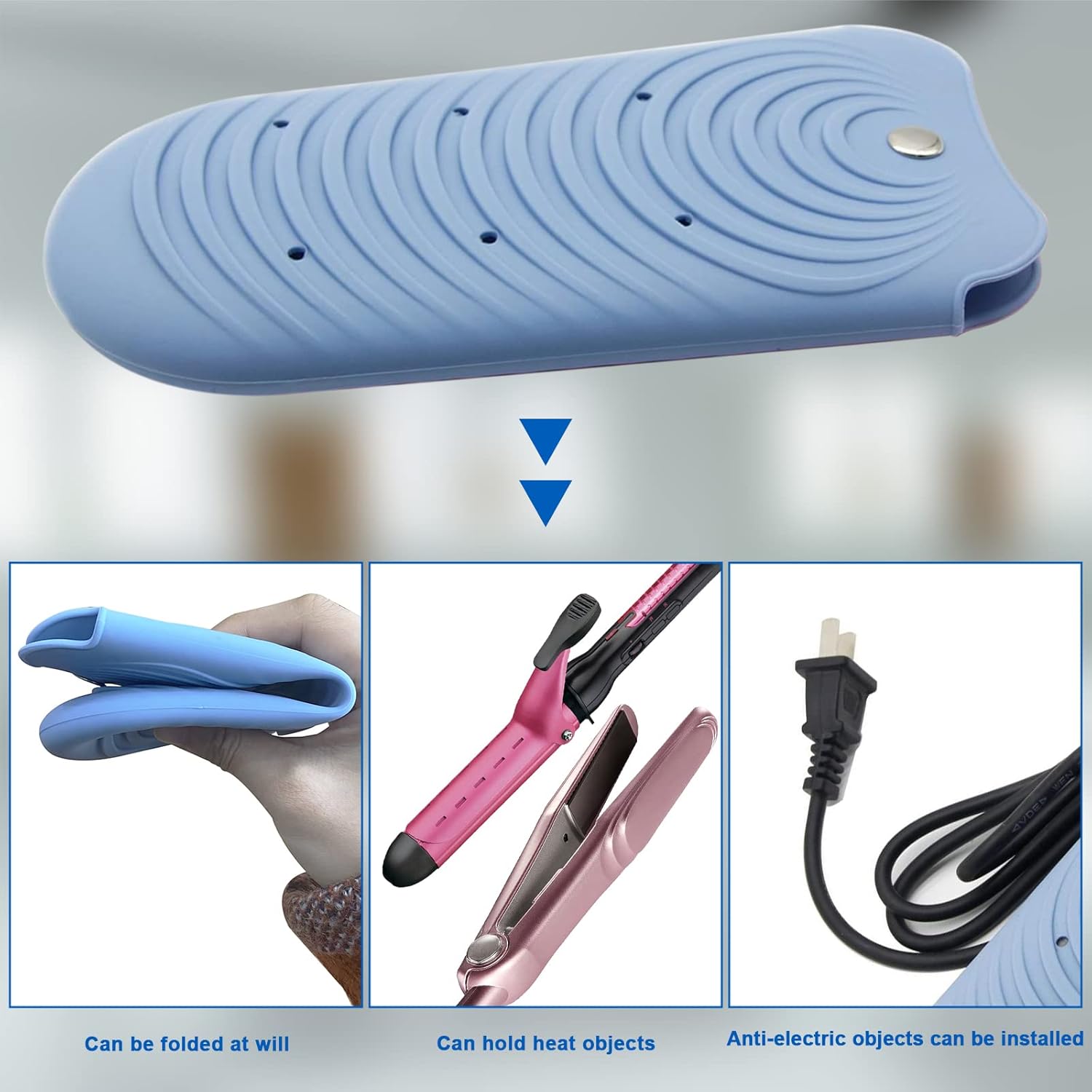 - 【Unique Design】Excellent non-slip waves texture effectively prevents hot hair styling tools slippery from table. Holes on mat pouch fast chill salon appliances. Front button fixes the tools unmovable.