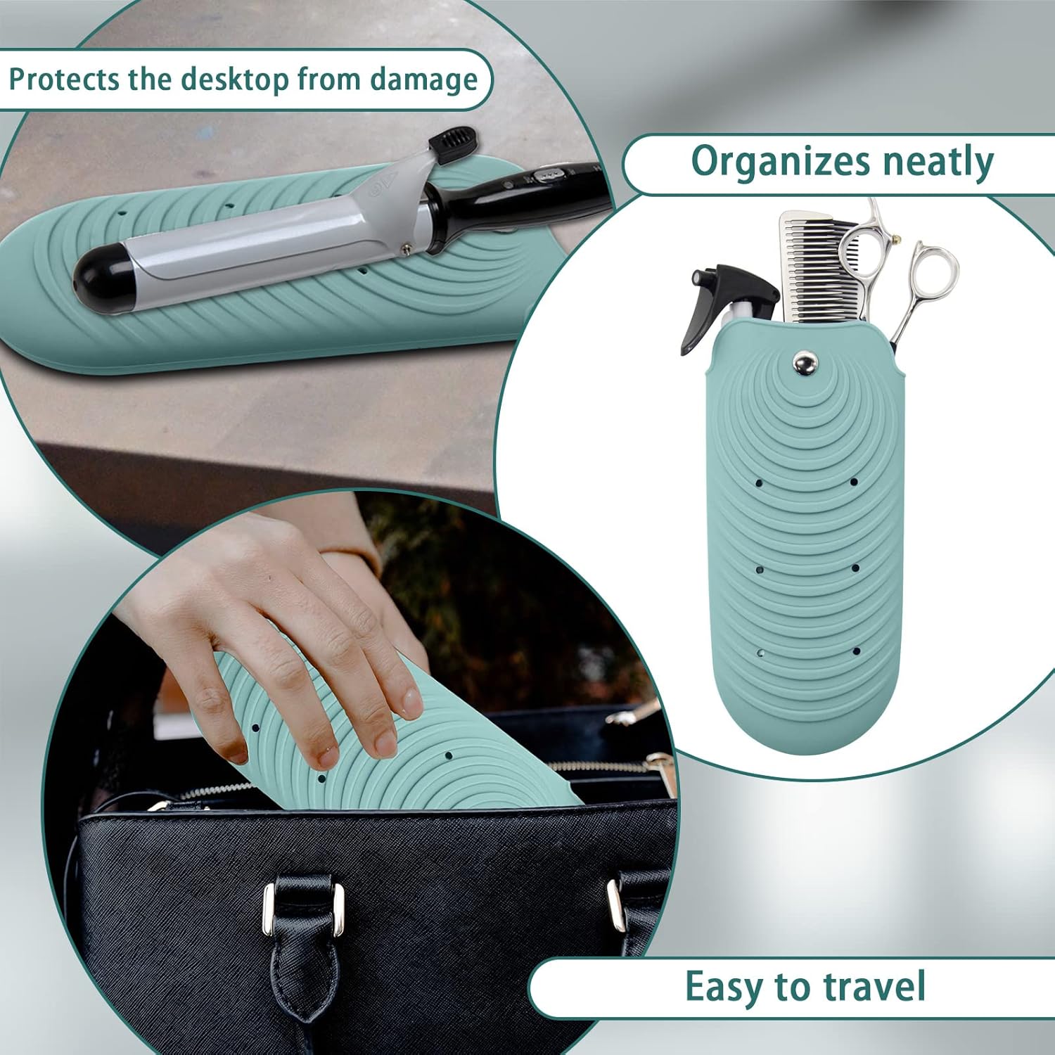 Heat Resistant Silicone Mat Pouch for Hair Styling Tools, Curling and Flat Irons Non-Slip Travel Cover, Small Portable Straightener Pad for Curler Wands Storage, Hot Waver (Green)