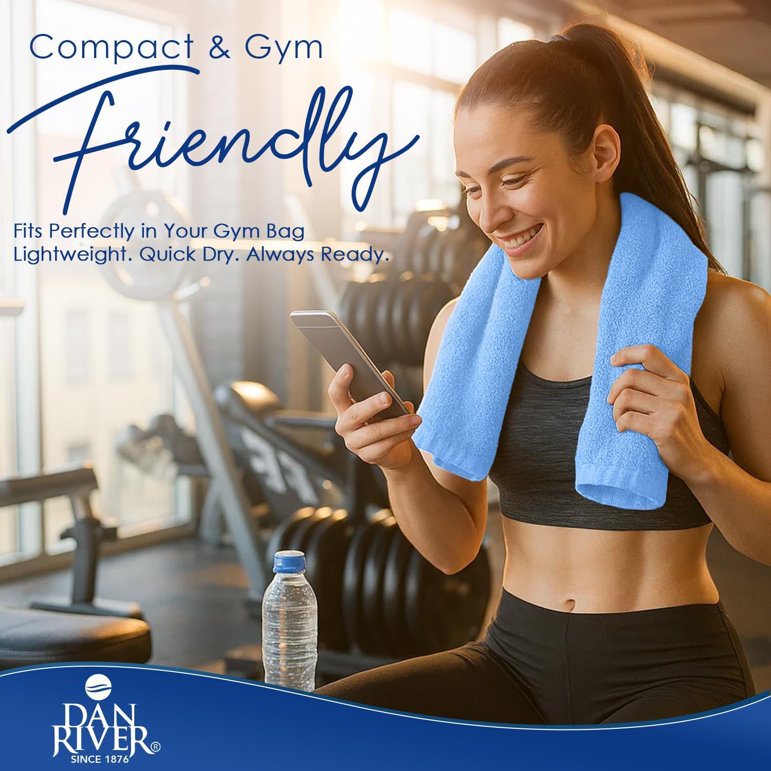 DAN RIVER 6-Pack Premium Hand Towels (16x28 Inches) - 100% Cotton, Ultra Soft, Lightweight, Highly Absorbent Towels for Bathroom, Spa, Gym, Salon, Hotel, and Travel - 550 GSM โ M-Blue