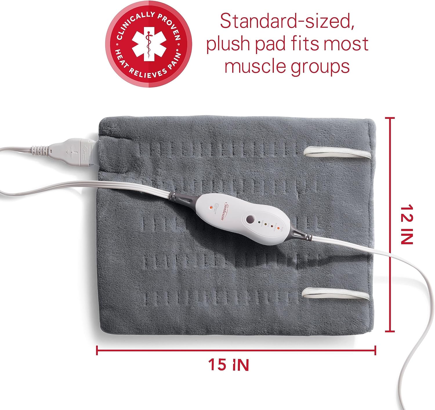- Pain Relief: 12 x 15-inch premium Sunbeam heating pad fits most muscle groups to deliver fast, soothing heat therapy for common muscle and joint pain
