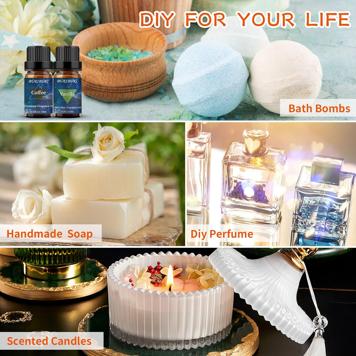 - Packing Includes: 10ml Coffee Oil x1, 10ml Vanilla Oil x1. With no adulterants or dilution, BURIBURI natural scented oil is bottled in a durable amber glass bottle.