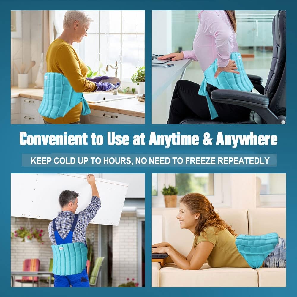 Ice Pack for Back Pain Relief, 2 Hours Long Lasting Cold Pack for Lower Back, Cold Therapy Flexible Ice Pack Wrap for Lumbar Pain, Sciatica, Coccyx, Swelling, Surgery