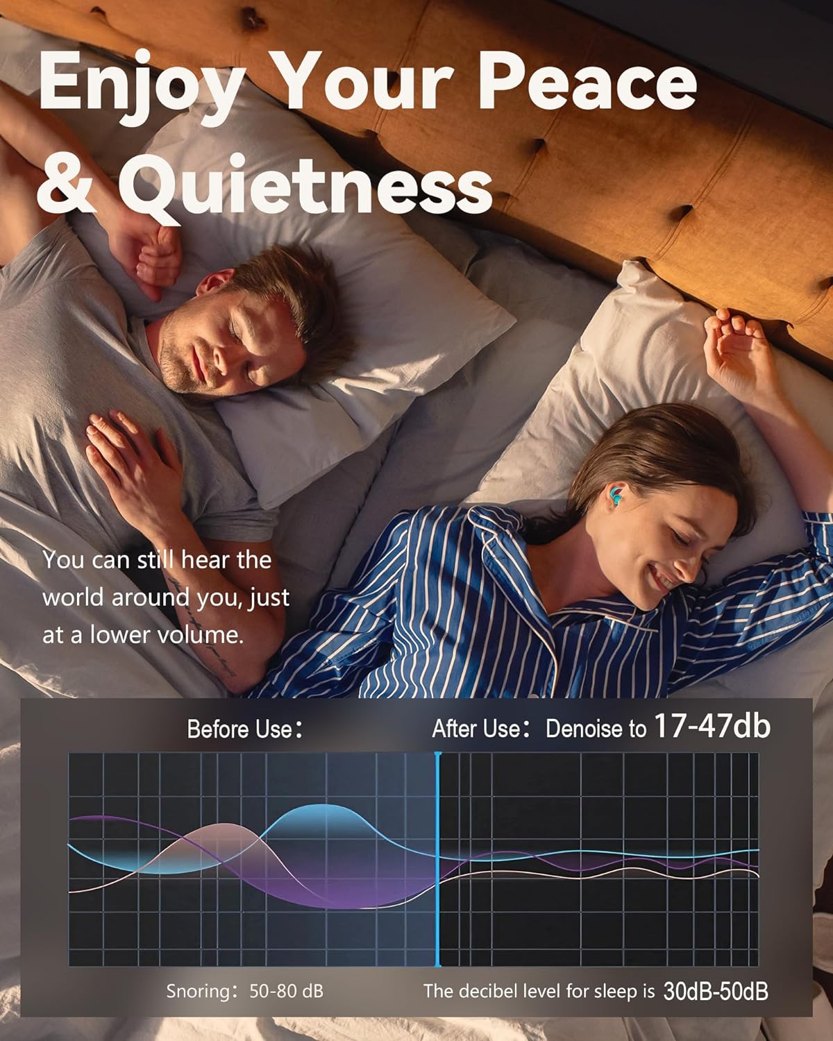 - Effective Noise Reduction: The ear plugs noise reduction have different noise-cancelling effects in different scenes (NRR 25dB to 33dB),soften the sound source and reduce noise while preserving the sound clarity and sharpness. These comfortable ear plugs for sleeping help preserve your hearing and provide you with some peace in a noisy world.