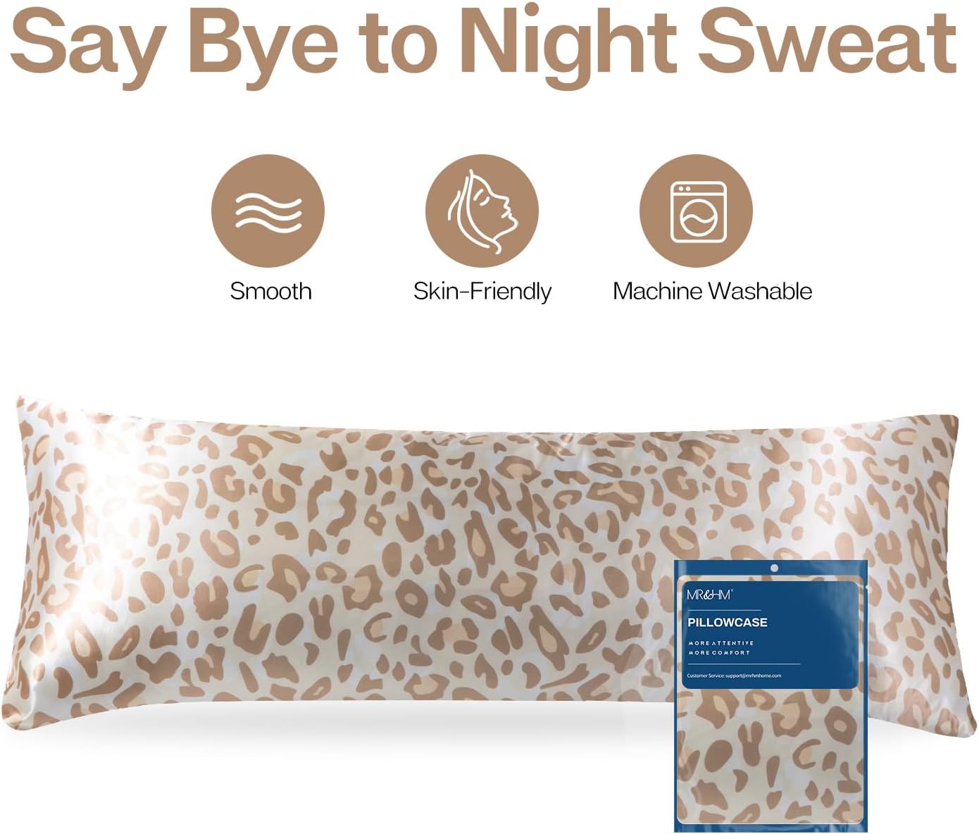 MR&HM Satin Body Pillow Cover, Soft and Breathable Body Pillow Case with Envelope Closure, Cooling and Silky Long Pillowcase for Hair and Skin,Grey (20x54, Champagne Leopard)