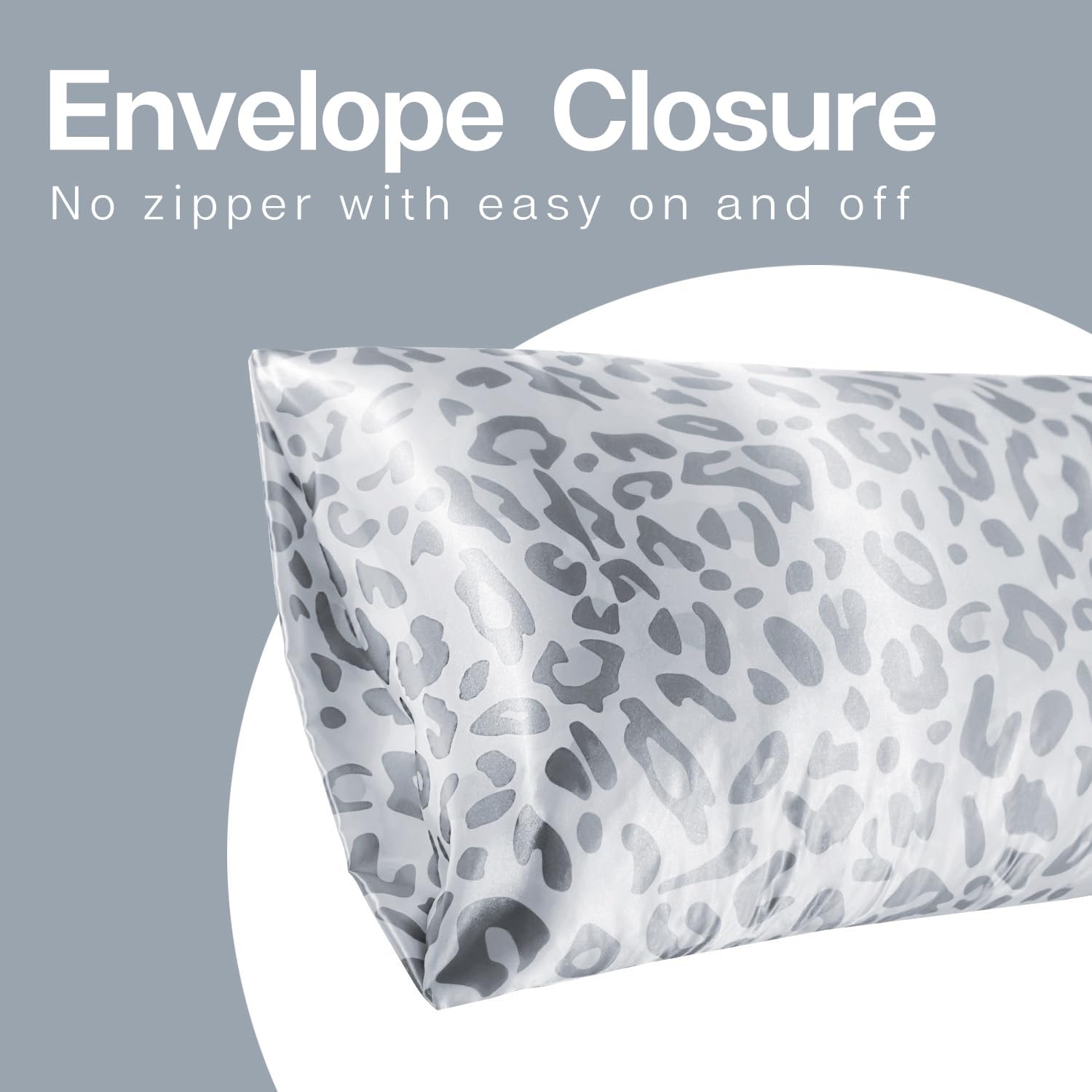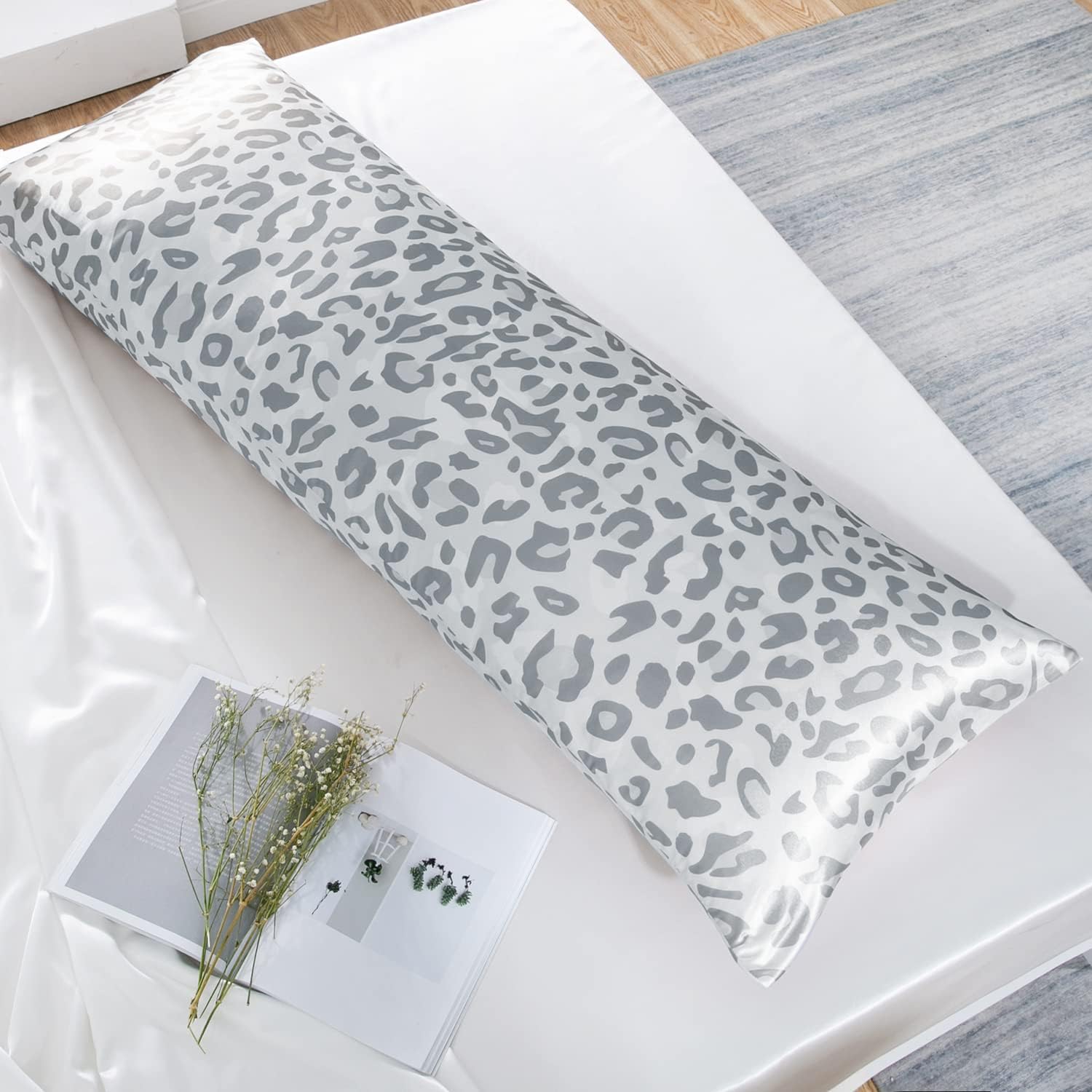 MR&HM Satin Body Pillow Cover, Soft and Breathable Body Pillow Case with Envelope Closure, Cooling and Silky Long Pillowcase for Hair and Skin,Grey (20x54, Silver Leopard)