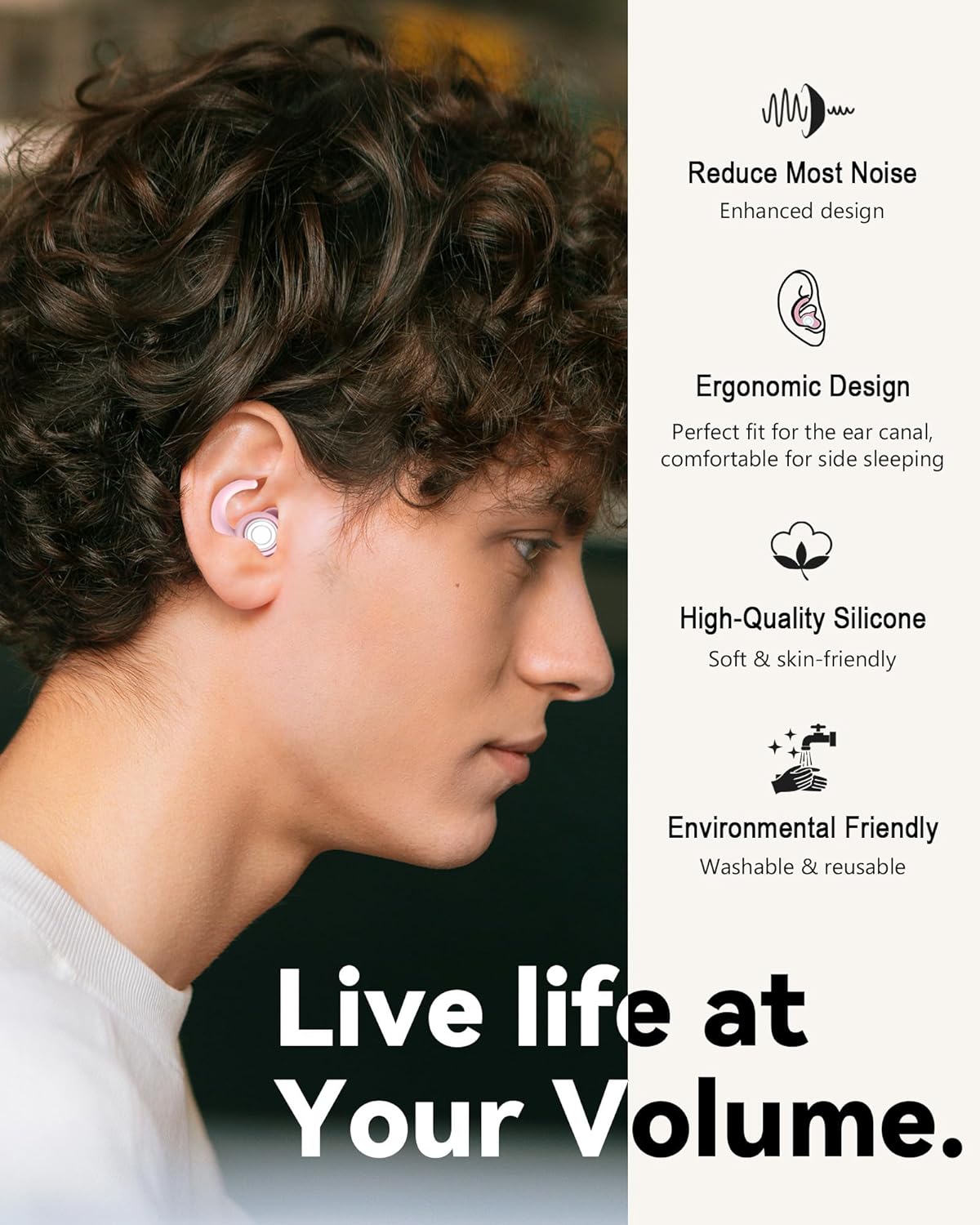 - Effective Noise Reduction: The ear plugs noise reduction have different noise-cancelling effects in different scenes (NRR 25dB to 33dB),soften the sound source and reduce noise while preserving the sound clarity and sharpness. These comfortable ear plugs for sleeping help preserve your hearing and provide you with some peace in a noisy world.