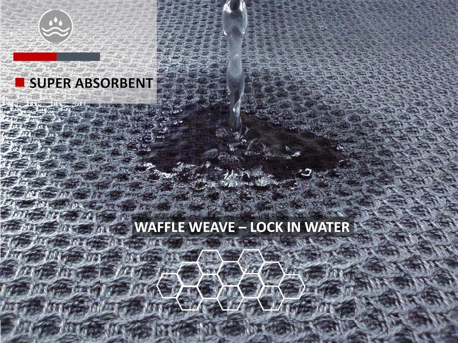 - 【EXTRA SOFT and SUPER ABSORBENT】The premium cotton material and the unique waffle weave design make sure these kitchen dish towels are breathable, extra soft and super absorbent. The no-scratch feature provide utmost protection to your valuables. These fluffy kitchen towels soak up much more water than cheap paper towels. They will remove any liquids in no time with simple wipes