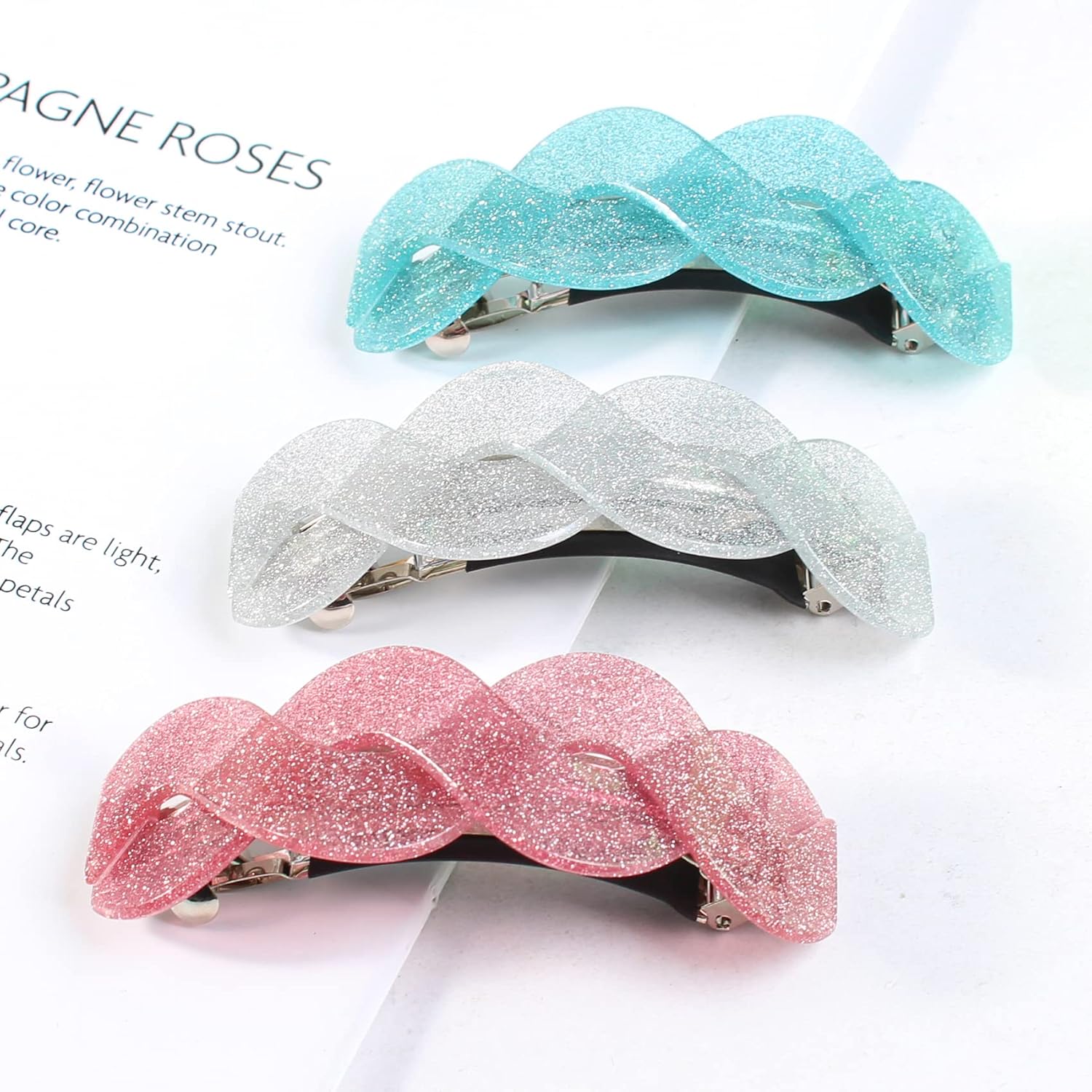 3 Pcs Large Retro Women's Hair Barrettes, French Hair Pins, Thick Hair Clasps and Accessories (fine powder1)