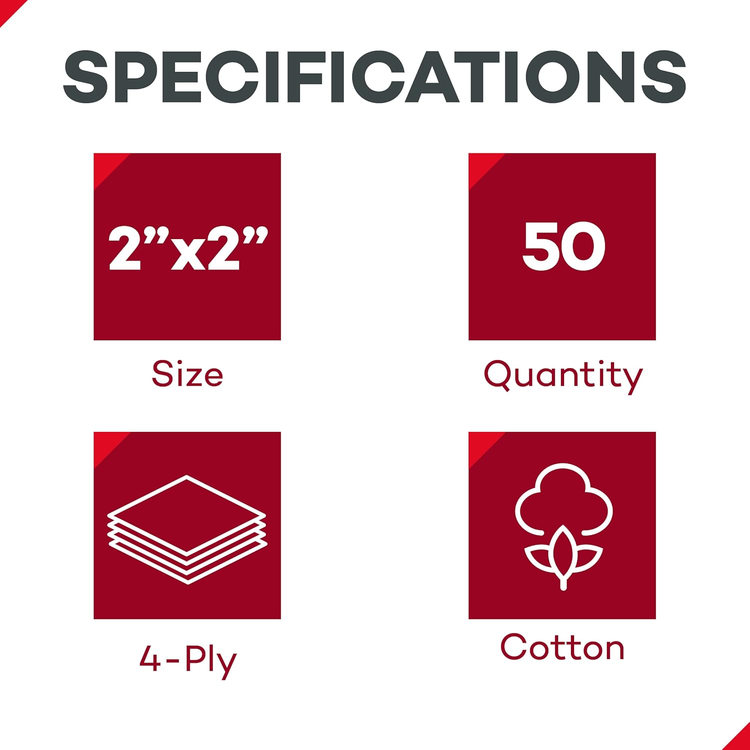 - Dealmed Premium Non-Woven Sponges – 2" x 2" 4-Ply Non-Woven Gauze Pads, 25 Pouches, 2 Per Pouch, Absorbent Gauze Sponges, Wound Care Product for First Aid Kits and Medical Facilities
