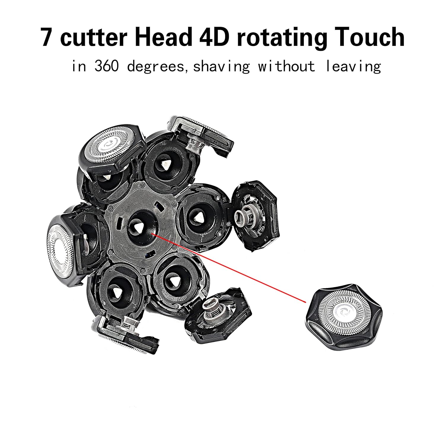 7 Blades Head Men's Electric Shaver Replacement Heads Floating Washable Shaver Replacement Blades for Bald Men (Black)