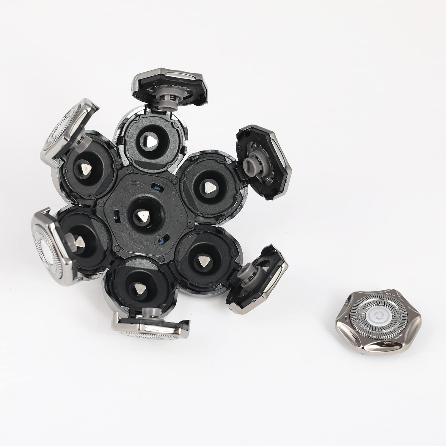 7 Blades Head Men's Electric Shaver Replacement Heads Floating Washable Shaver Replacement Blades for Bald Men (Silvery)