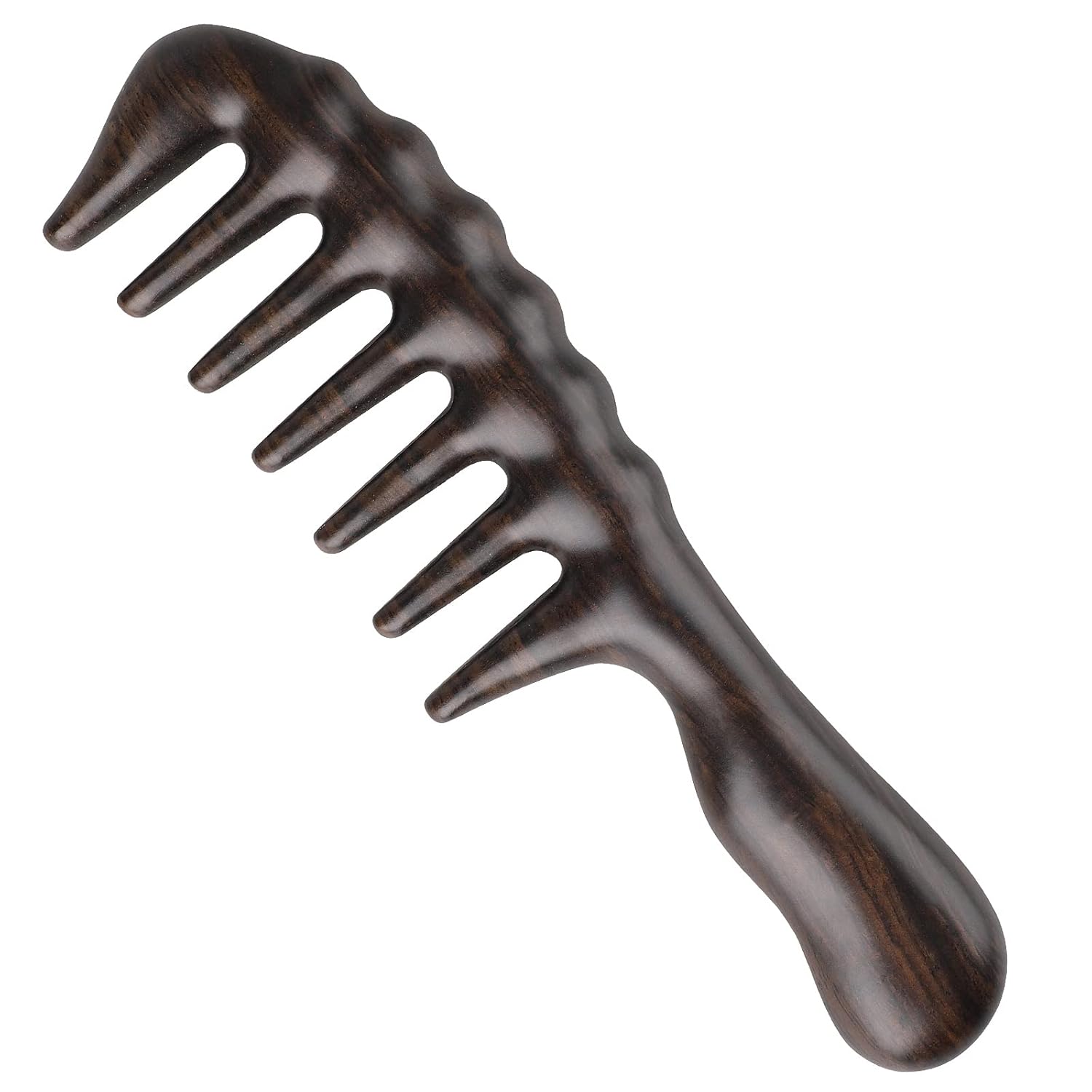 Onedor Handmade 100% Natural Black Sandalwood Hair Combs - Anti-Static Sandalwood Scent Natural Hair Detangler Wooden Comb (Thickening Comb)