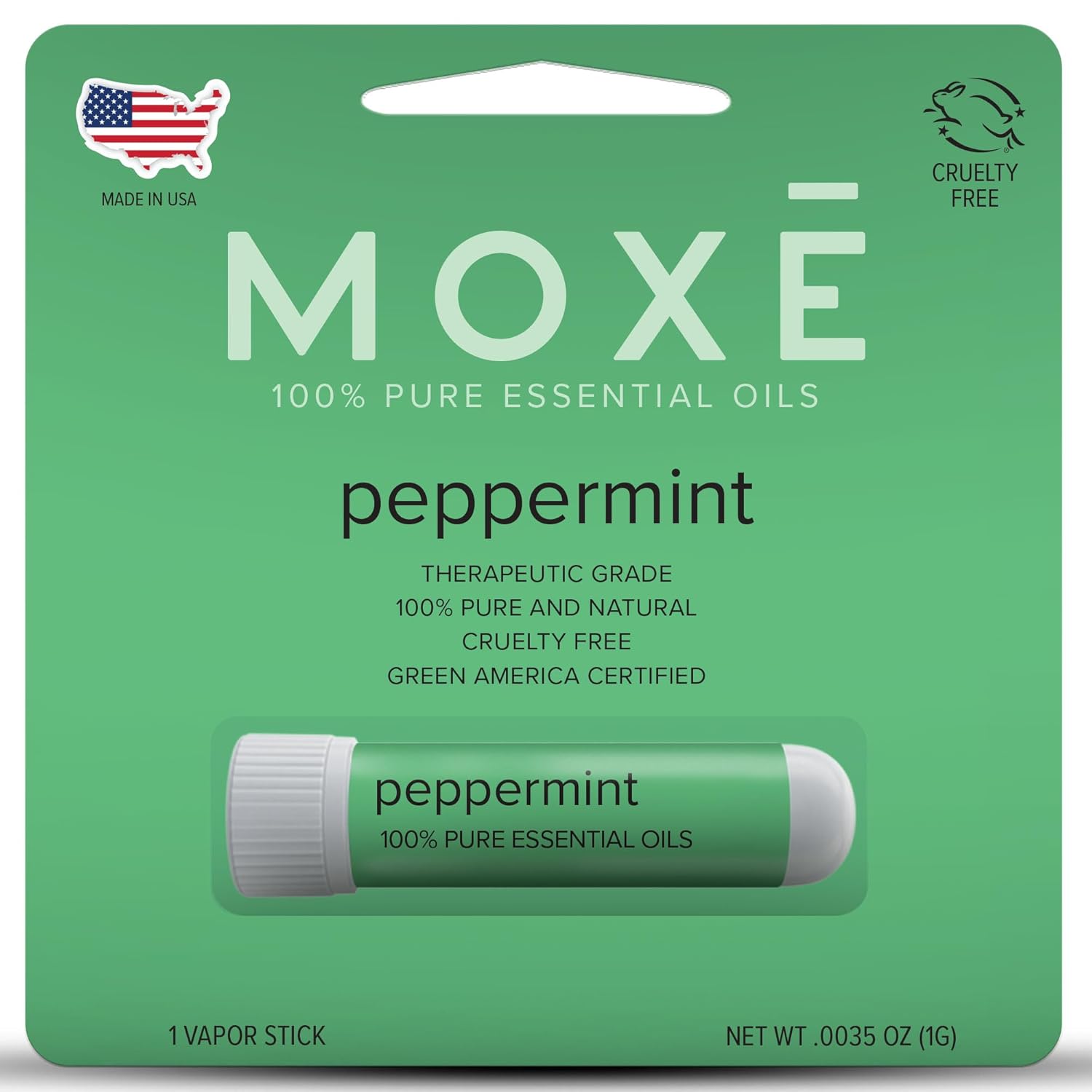 MOXE Peppermint Essential Oil Nasal Inhaler, Therapeutic No-Mess Aromatherapy, Cooling, Refreshing, Invigorating, Uplifts Mood and Positivity, Pure and Undiluted, Made in USA (1 Pack)