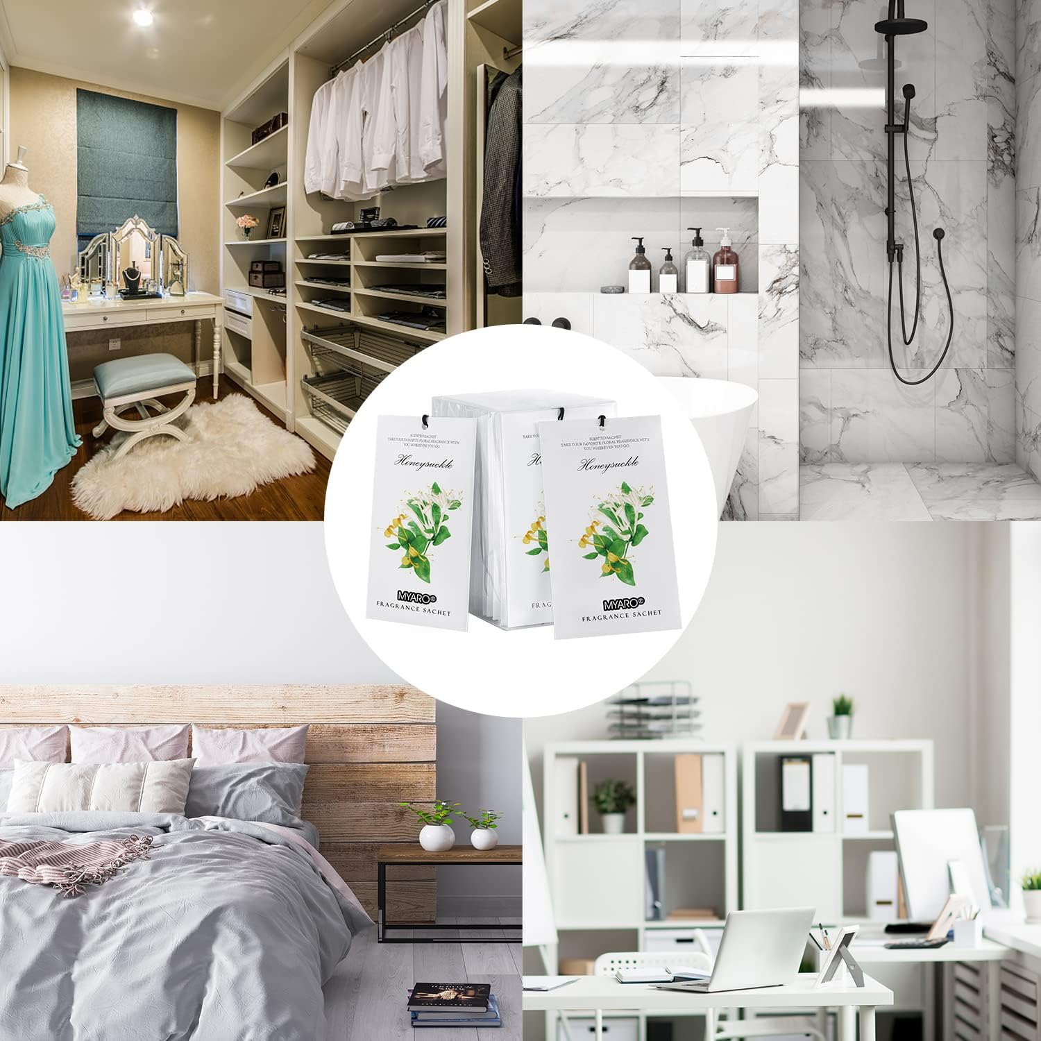 - MYARO Honeysuckle sachet bags: Includes 12 scented sachets (each bag size: 4.13 inch x 2.76 inch). Our natural fragrance will take you on a journey with the Honeysuckle fresh scents sachet packets