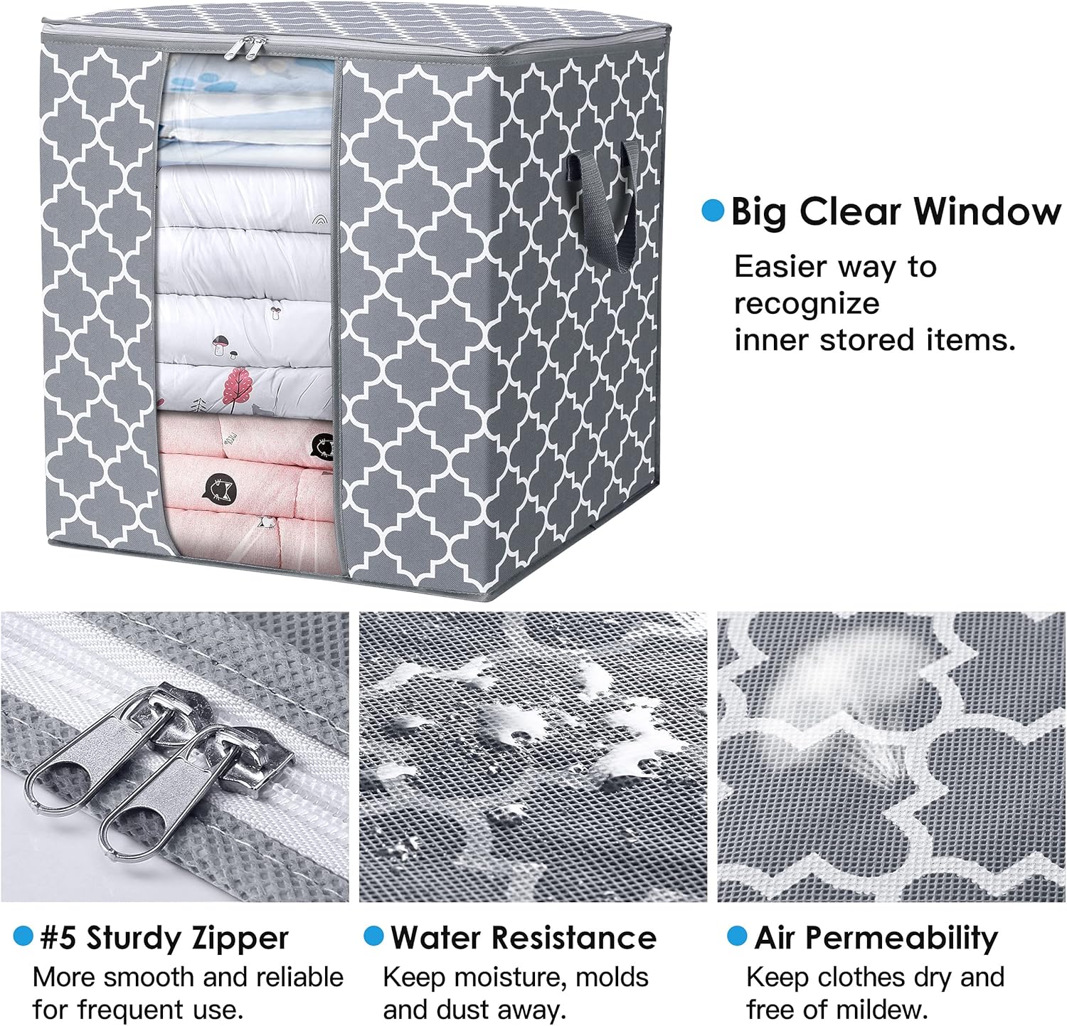 WISELIFE Storage Bags 6 Pack/100L Large Blanket Clothes Organization and Storage Containers for Comforters,Bedding, Foldable Organizer with Reinforced Handle, Clear Window, Sturdy Zippers,Light Gray