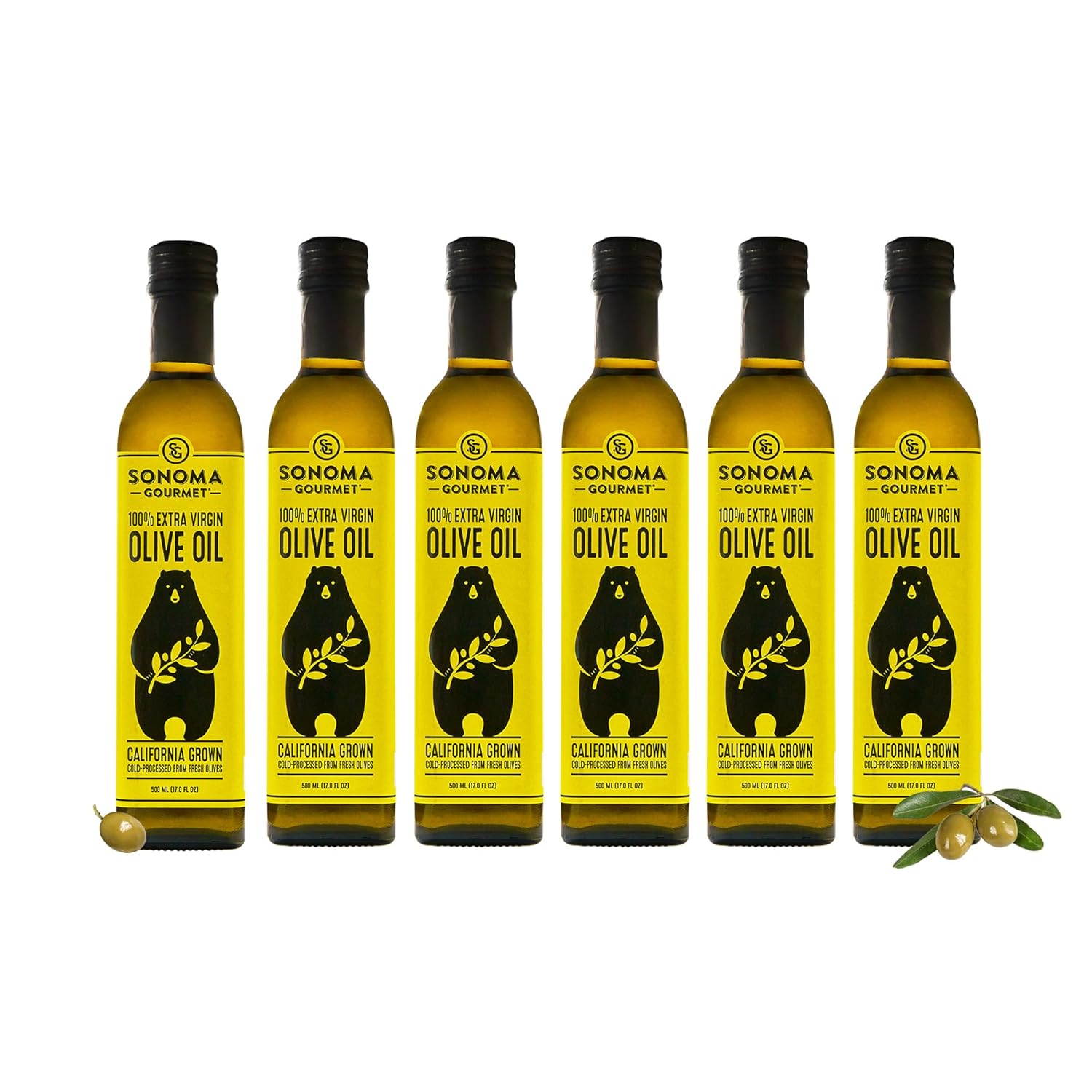 Sonoma Gourmet : Extra Virgin Olive Oil | 100% California | First Press | Small Batch| Non GMO | 17 FL OZ (Pack of 6)